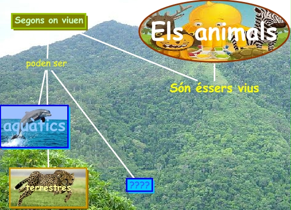 Este Cmap, tiene información relacionada con: Els animals, Segons on viuen poden ser ????, Segons on viuen poden ser aquàtics, Els animals Són éssers vius Segons on viuen, Segons on viuen poden ser terrestres