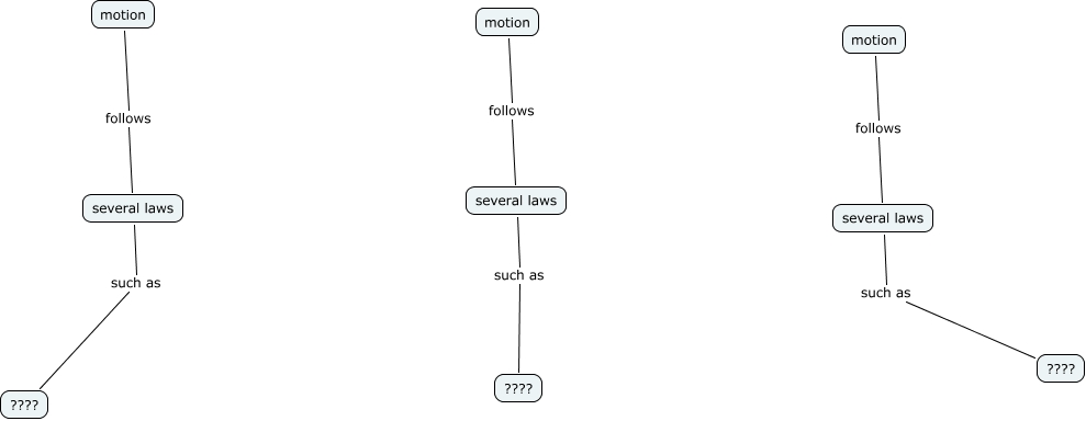 This Concept Map, created with IHMC CmapTools, has information related to: Untitled 4, motion follows several laws, several laws such as ????, several laws such as ????, motion follows several laws, several laws such as ????, motion follows several laws