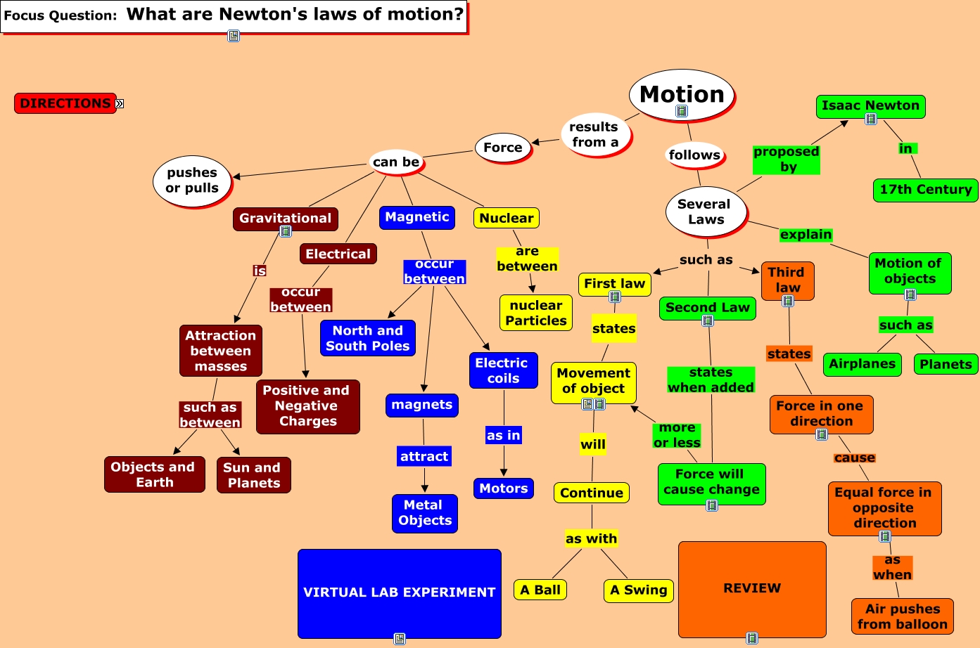 This Concept Map, created with IHMC CmapTools, has information related to: COMPLETE EVAL EXAM, Second Law states when added Force will cause change, Several Laws proposed by Isaac Newton, Isaac Newton in 17th Century, Electric coils as in Motors, Several Laws such as Second Law, Force can be pushes or pulls, Electrical occur between Positive and Negative Charges, Directions: format instructions, Attraction between masses such as between Objects and Earth, Several Laws explain Motion of objects, "SILENT"collaboration COMMUNICATE WITH GROUP VIA TEXT MESSAGE BOX, Magnetic occur between North and South Poles, Force can be Magnetic, Force can be Electrical, Nuclear are between nuclear Particles, Several Laws such as Third law, Force can be Nuclear, Magnetic occur between magnets, Directions: "SILENT"collaboration, Motion results from a Force