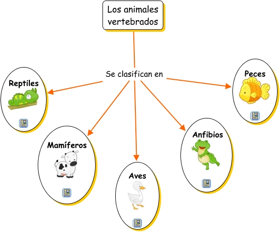 Este Cmap, tiene información relacionada con: los vertebrados, Los animales vertebrados Se clasifican en Aves, Los animales vertebrados Se clasifican en Peces, Los animales vertebrados Se clasifican en Reptiles, Los animales vertebrados Se clasifican en Mamíferos, Los animales vertebrados Se clasifican en Anfibios