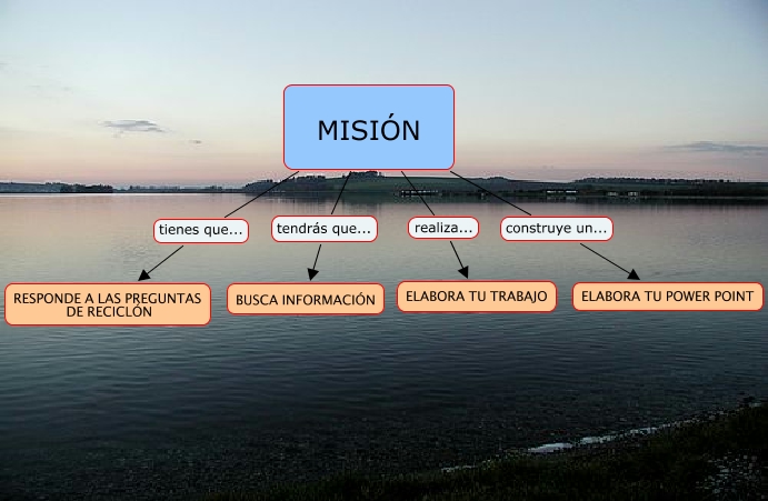 Este Cmap, tiene información relacionada con: Web, MISIÓN construye un... ELABORA TU POWER POINT, MISIÓN tienes que... RESPONDE A LAS PREGUNTAS DE RECICLÓN, MISIÓN tendrás que... BUSCA INFORMACIÓN, MISIÓN realiza... ELABORA TU TRABAJO