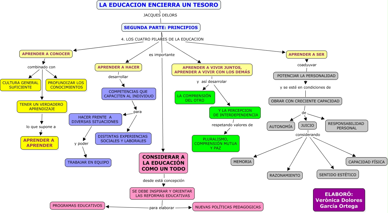 Este Cmap, tiene información relacionada con: LA EDUCACION ENCIERRA UN TESORO, JACQUES DELORS, Y LA PERCEPCION DE INTERDEPENDENCIA respetando valores de PLURALISMO, COMPRENSIÓN MUTUA Y PAZ, APRENDER A CONOCER combinado con PROFUNDIZAR LOS CONOCIMIENTOS, APRENDER A CONOCER combinado con TENER UN VERDADERO APRENDIZAJE, SEGUNDA PARTE: PRINCIPIOS 4. LOS CUATRO PILARES DE LA EDUCACION APRENDER A VIVIR JUNTOS, APRENDER A VIVIR CON LOS DEMÁS, OBRAR CON CRECIENTE CAPACIDAD de RESPONSABILIDAD PERSONAL, TENER UN VERDADERO APRENDIZAJE lo que supone a APRENDER A APRENDER, POTENCIAR LA PERSONALIDAD y se esté en condiciones de OBRAR CON CRECIENTE CAPACIDAD, SEGUNDA PARTE: PRINCIPIOS 4. LOS CUATRO PILARES DE LA EDUCACION APRENDER A CONOCER, SE DEBE INSPIRAR Y ORIENTAR LAS REFORMAS EDUCATIVAS para elaborar PROGRAMAS EDUCATIVOS, CONSIDERAR A LA EDUCACIÓN COMO UN TODO desde está concepción SE DEBE INSPIRAR Y ORIENTAR LAS REFORMAS EDUCATIVAS, COMPETENCIAS QUE CAPACITEN AL INDIVIDUO para DISTINTAS EXPERIENCIAS SOCIALES Y LABORALES, JUICIO considerando SENTIDO ESTÉTICO, APRENDER A SER coadyuvar POTENCIAR LA PERSONALIDAD, OBRAR CON CRECIENTE CAPACIDAD de AUTONOMÍA, SEGUNDA PARTE: PRINCIPIOS 4. LOS CUATRO PILARES DE LA EDUCACION APRENDER A HACER, HACER FRENTE A DIVERSAS SITUACIONES y poder TRABAJAR EN EQUIPO, APRENDER A HACER desarrollar COMPETENCIAS QUE CAPACITEN AL INDIVIDUO, SEGUNDA PARTE: PRINCIPIOS es importante CONSIDERAR A LA EDUCACIÓN COMO UN TODO, JUICIO considerando RAZONAMIENTO, LA EDUCACION ENCIERRA UN TESORO JACQUES DELORS SEGUNDA PARTE: PRINCIPIOS