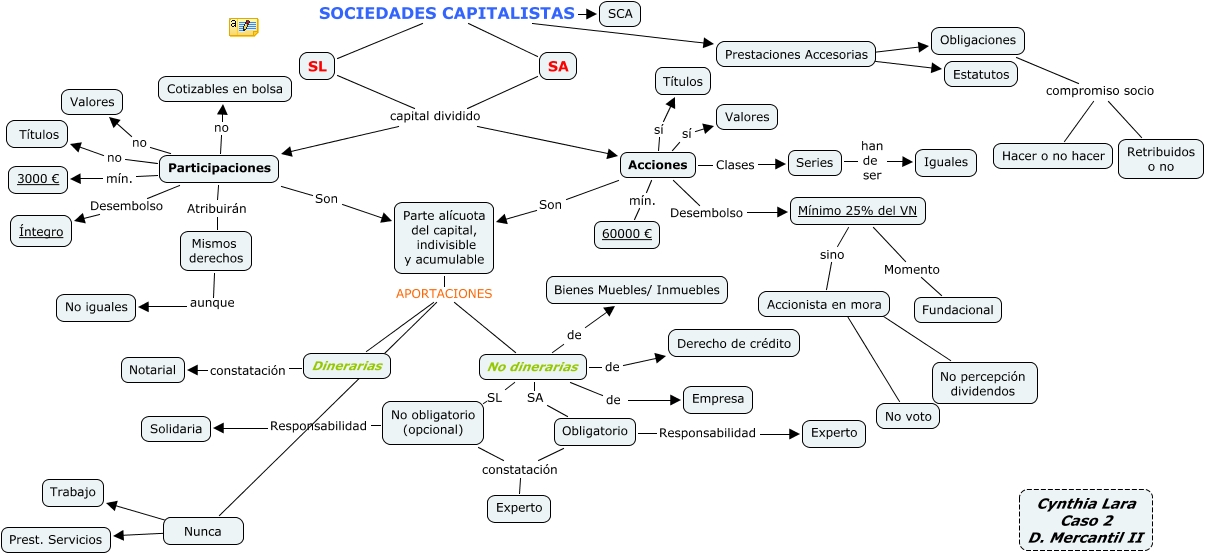 Este Cmap, tiene información relacionada con: Cynthia_Lara_M3_Familia Gras Fortuny_ Caso 2, Mismos derechos aunque No iguales, Series han de ser Iguales, Parte alícuota del capital, indivisible y acumulable APORTACIONES Dinerarias, SA capital dividido Acciones, Acciones Desembolso Mínimo 25% del VN, Obligaciones compromiso socio Retribuidos o no, No dinerarias de Empresa, Dinerarias constatación Notarial, Parte alícuota del capital, indivisible y acumulable APORTACIONES No dinerarias, No dinerarias SL No obligatorio (opcional), Obligaciones compromiso socio Hacer o no hacer, Acciones mín. 60000 €, No dinerarias SA Obligatorio, Mínimo 25% del VN sino Accionista en mora, No obligatorio (opcional) constatación Experto, Participaciones no Valores, Acciones sí Valores, No obligatorio (opcional) Responsabilidad Solidaria, Participaciones Atribuirán Mismos derechos, Nunca ???? Prest. Servicios