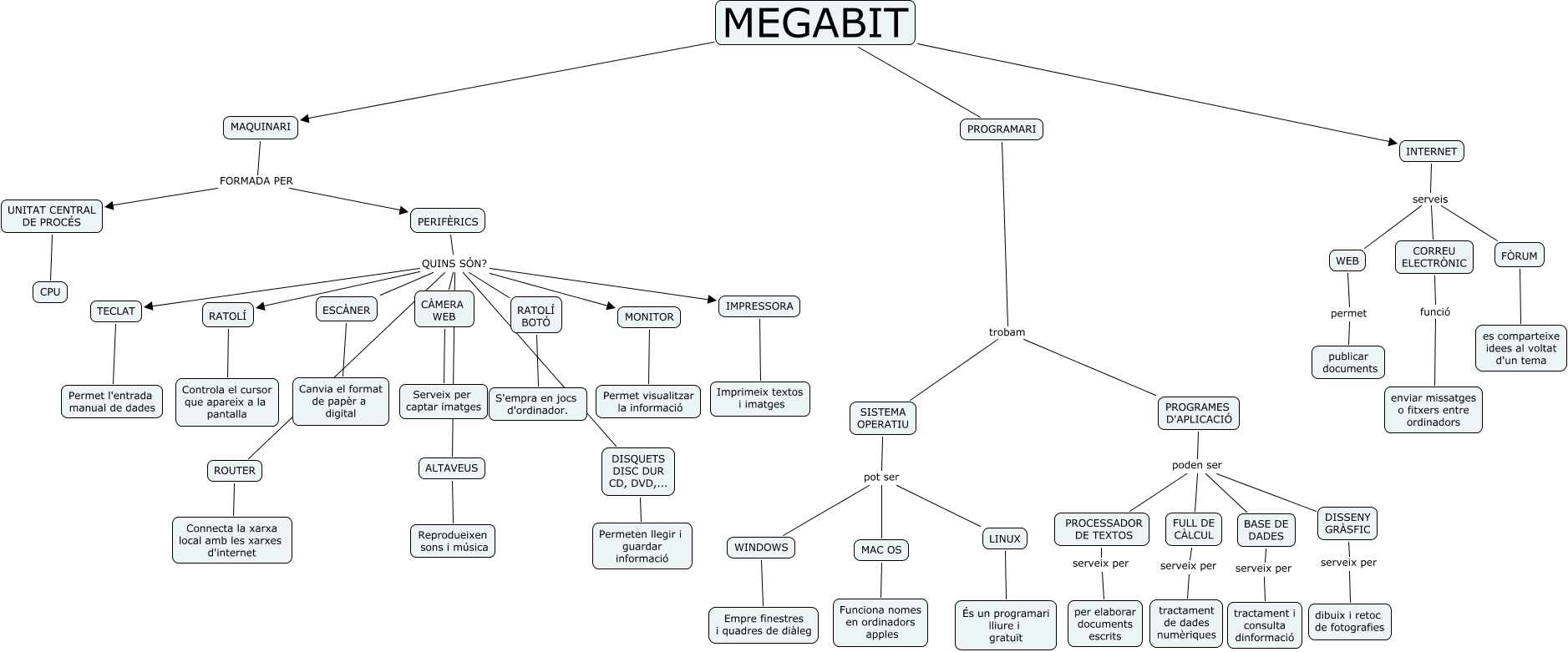 Aquest mapa conceptual conté informació relacionada amb: ACTIVITAT OBLIGATORIA 1 MEGABIT, CORREU ELECTRÒNIC funció enviar missatges o fitxers entre ordinadors, MAC OS Funciona nomes en ordinadors apples, CÀMERA WEB Serveix per captar imatges, PERIFÈRICS QUINS SÓN? ALTAVEUS, SISTEMA OPERATIU pot ser WINDOWS, PROCESSADOR DE TEXTOS serveix per per elaborar documents escrits, IMPRESSORA Imprimeix textos i imatges, SISTEMA OPERATIU pot ser MAC OS, PROGRAMES D'APLICACIÓ poden ser DISSENY GRÀSFIC, PROGRAMES D'APLICACIÓ poden ser BASE DE DADES, LINUX És un programari lliure i gratuït, INTERNET serveis CORREU ELECTRÒNIC, FULL DE CÀLCUL serveix per tractament de dades numèriques, PERIFÈRICS QUINS SÓN? CÀMERA WEB, WINDOWS Empre finestres i quadres de diàleg, INTERNET serveis WEB, BASE DE DADES serveix per tractament i consulta dinformació, PROGRAMES D'APLICACIÓ poden ser FULL DE CÀLCUL, MAQUINARI FORMADA PER PERIFÈRICS, INTERNET serveis FÒRUM