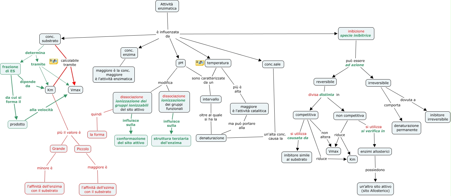Questa Cmap, creata con IHMC CmapTools, contiene informazioni relative a: domanda 8 modulo Enzimi 2, Piccolo maggiore è l'affinità dell'ezima con il substrato, pH modifica dissociazione ionizzazione dei gruppi ionizzabili del sito attivo, conc. substrato determina tramite Km, conc. substrato calcolabile tramite Km, non competitiva si utilizza si verifica in enzimi allosterici, pH sono caratterizzate da un intervallo, competitiva riduce Km, conc. substrato determina tramite Vmax, reversibile divisa distinta in non competitiva, competitiva non altera Vmax, inibizione specie inibitrice può essere ad azione reversibile, Km più il valore è Piccolo, dissociazione ionizzazione dei gruppi funzionali influisce sulla struttura terziaria del'enzima, inibizione specie inibitrice può essere ad azione irreversibile, irreversibile dovuta a inibitore irreversibile, dissociazione ionizzazione dei gruppi ionizzabili del sito attivo influisce sulla conformazione del sito attivo, temperatura più è alta maggiore è l'attività catalitica, pH modifica dissociazione ionizzazione dei gruppi funzionali, frazione di ES dipende da Km, prodotto alla velocità Vmax