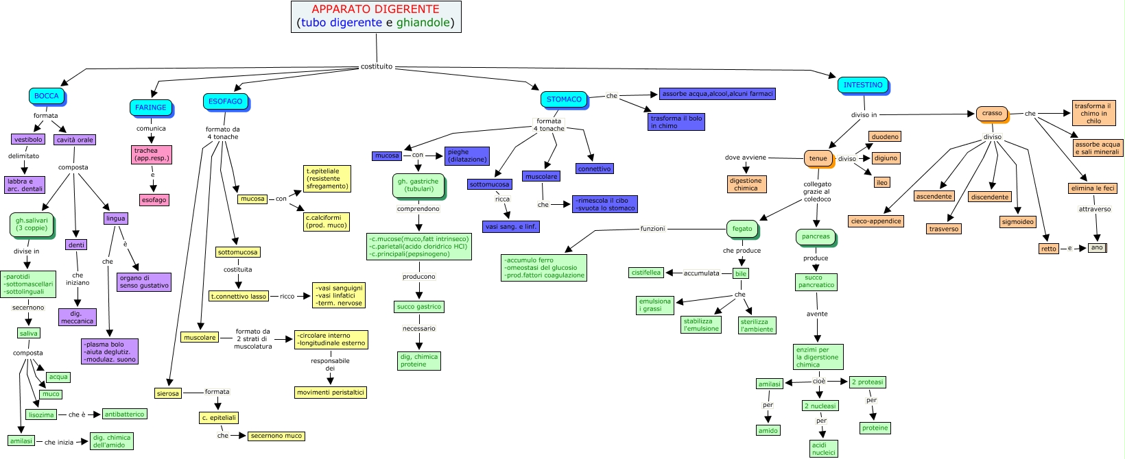 Questa Cmap, creata con IHMC CmapTools, contiene informazioni relative a: Mappa Apparato Digerente-Cocuzzone, succo pancreatico avente enzimi per la digerstione chimica, bile che emulsiona i grassi, 2 proteasi per proteine, APPARATO DIGERENTE (tubo digerente e ghiandole) costituito ESOFAGO, ESOFAGO formato da 4 tonache sottomucosa, trachea (app.resp.) e esofago, lingua che -plasma bolo -aiuta deglutiz. -modulaz. suono, ESOFAGO formato da 4 tonache mucosa, crasso che trasforma il chimo in chilo, crasso che elimina le feci, c. epiteliali che secernono muco, -c.mucose(muco,fatt intrinseco) -c.parietali(acido cloridrico HCl) -c.principali(pepsinogeno) producono succo gastrico, enzimi per la digerstione chimica cioè 2 nucleasi, denti che iniziano dig. meccanica, tenue diviso digiuno, t.connettivo lasso ricco -vasi sanguigni -vasi linfatici -term. nervose, APPARATO DIGERENTE (tubo digerente e ghiandole) costituito BOCCA, sottomucosa costituita t.connettivo lasso, crasso diviso retto, 2 nucleasi per acidi nucleici