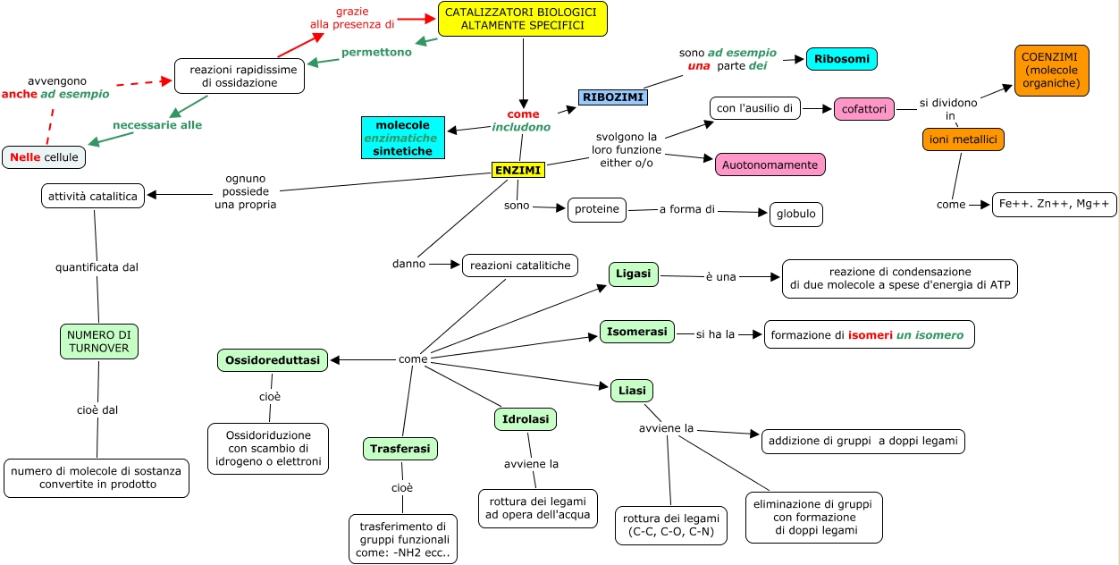 Questa Cmap, creata con IHMC CmapTools, contiene informazioni relative a: domanda 7 modulo enzimi 2_reviewed, RIBOZIMI sono ad esempio una parte dei Ribosomi, Ossidoreduttasi cioè Ossidoriduzione con scambio di idrogeno o elettroni, Isomerasi si ha la formazione di isomeri un isomero, CATALIZZATORI BIOLOGICI ALTAMENTE SPECIFICI permettono reazioni rapidissime di ossidazione, cofattori si dividono in COENZIMI (molecole organiche), Liasi avviene la rottura dei legami (C-C, C-O, C-N), CATALIZZATORI BIOLOGICI ALTAMENTE SPECIFICI come includono molecole enzimatiche sintetiche, ENZIMI danno reazioni catalitiche, CATALIZZATORI BIOLOGICI ALTAMENTE SPECIFICI come includono RIBOZIMI, reazioni rapidissime di ossidazione grazie alla presenza di CATALIZZATORI BIOLOGICI ALTAMENTE SPECIFICI, reazioni catalitiche come Trasferasi, Idrolasi avviene la rottura dei legami ad opera dell'acqua, Nelle cellule avvengono anche ad esempio reazioni rapidissime di ossidazione, CATALIZZATORI BIOLOGICI ALTAMENTE SPECIFICI come includono ENZIMI, Liasi avviene la eliminazione di gruppi con formazione di doppi legami, ioni metallici come Fe++. Zn++, Mg++, attività catalitica quantificata dal NUMERO DI TURNOVER, reazioni catalitiche come Ossidoreduttasi, reazioni catalitiche come Ligasi, proteine a forma di globulo