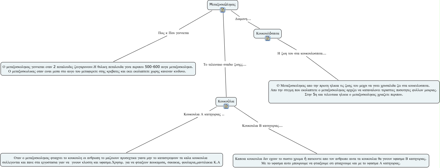 Αυτός ο εννοιολογικός χάρτης, που δημιουργήθηκε με το IHMC Cmap Tools, περιέχει πλήροφορίες που σχετίζονται με: Απο την Ελενη Γ. προς το Σουφλι, Mεταξοσκώληκας Διαμονη... Κουκουλόσπιτα, Mεταξοσκώληκας Πως κ Που γεννιεται Ο μεταξοσκοληκας γεννιεται οταν 2 πεταλουδες ζευγαρονουν.Η θυλικη πεταλουδα γενα περιπου 500-600 αυγα μεταξοσκοληκα. Ο μεταξοσκωλικας οταν ειναι μεσα στο αυγο του μεταφερετε στης κρεβατες και εκει εκολαπτετε χωρης κανεναν κινδυνο., Mεταξοσκώληκας Το τελευταιο σταδιο ζωηςς... Κουκούλια, Κουκουλόσπιτα Η ζωη του στα κουκουλοσπιτα... Ο Μεταξοσκοληκας απο την πρωτη ηλικια τις ζωης του μεχρι να γινει χρυσαλιδα ζει στα κουκυλοσπιτα. Απο την στιγμη που εκολαπτετε ο μεταξοσκοληκας αρχιζει να καταναλονει τεραστιες ποσοτητες φυλλων μουριας. Στην 5η και τελευταια ηλικια ο μεταξοσκοληκας χριαζετε περιπου., Κουκούλια Κουκουλια Α κατηγοριας .. Οταν ο μεταξοσκοληκας φτιαχνει το κουκουλη οι ανθρωπη το μαζευουν προσεχτικα γιανα μην το καταστρεψουν τα καλα κουκουλια συλλεγονται και πανε στα εργοστασια γιαν να γινουν κλοστη και υφασμα.Χρησιμ. για να φτιαξουν πουκαμισα, σακακια, φουλαρια,μαντιλακια Κ.Α, Κουκούλια Κουκουλια Β κατηγοριας... Καποια κουκουλια δεν εχουν το σωστο χρωμα ή πατιουντε απο τον ανθρωπο αυτα τα κουκουλια θα γινουν υφασμα Β κατηγοριας. Με το υφασμα αυτο μπουρουμε να φτιαξουμε οτι φτιαχνουμε και με το υφασμα Α κατηγοριας.