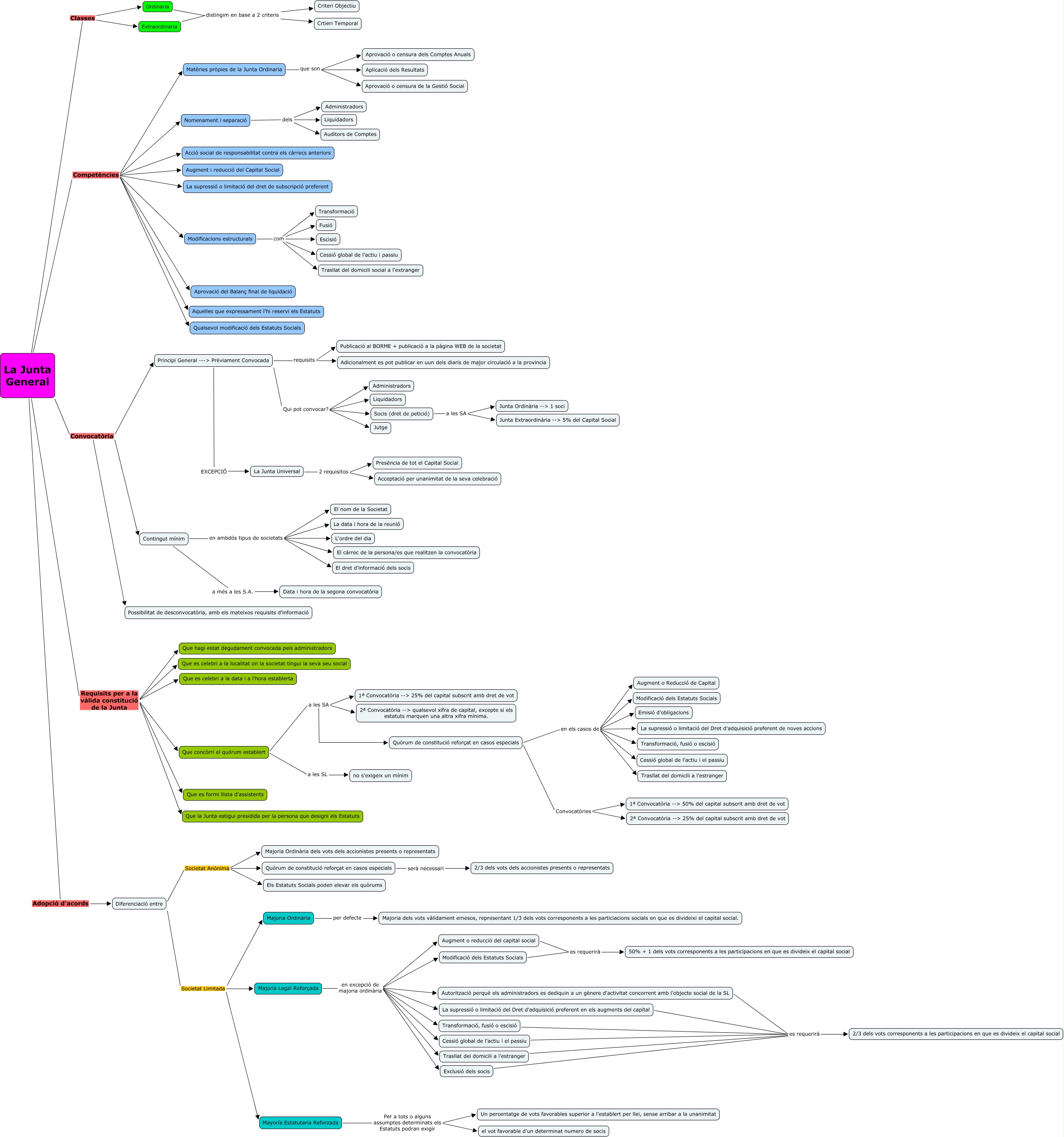Este Cmap, tiene información relacionada con: Cas 4 Lluís Ricart, Contingut mínim en ambdós tipus de societats El dret d'informació dels socis, Majoria Legal Reforçada en excepció de majoria ordinària La supressió o limitació del Dret d'adquisició preferent en els augments del capital, Principi General ---> Prèviament Convocada Qui pot convocar? Socis (dret de petició), Transformació, fusió o escisió es requerirà 2/3 dels vots corresponents a les participacions en que es divideix el capital social, La Junta General Competències Modificacions estructurals, La Junta General Competències Nomenament i separació, La Junta General Requisits per a la vàlida constitució de la Junta Que es celebri a la data i a l'hora establerta, Quòrum de constitució reforçat en casos especials en els casos de Augment o Reducció de Capital, La Junta General Competències Aquelles que expressament l'hi reservi els Estatuts, Extraordinaria distingim en base a 2 criteris Crtieri Temporal, Contingut mínim en ambdós tipus de societats La data i hora de la reunió, La Junta General Convocatòria Possibilitat de desconvocatòria, amb els mateixos requisits d'informació, La Junta General Competències Augment i reducció del Capital Social, Diferenciació entre Societat Anònima Majoria Ordinària dels vots dels accionistes presents o representats, Majoria Legal Reforçada en excepció de majoria ordinària Augment o reducció del capital social, Quòrum de constitució reforçat en casos especials en els casos de Emisió d'obligacions, La Junta General Classes Extraordinaria, Modificació dels Estatuts Socials es requerirà 50% + 1 dels vots corresponents a les participacions en que es divideix el capital social, Matèries pròpies de la Junta Ordinaria que son Aprovació o censura de la Gestió Social, Quòrum de constitució reforçat en casos especials en els casos de Cessió global de l'actiu i el passiu