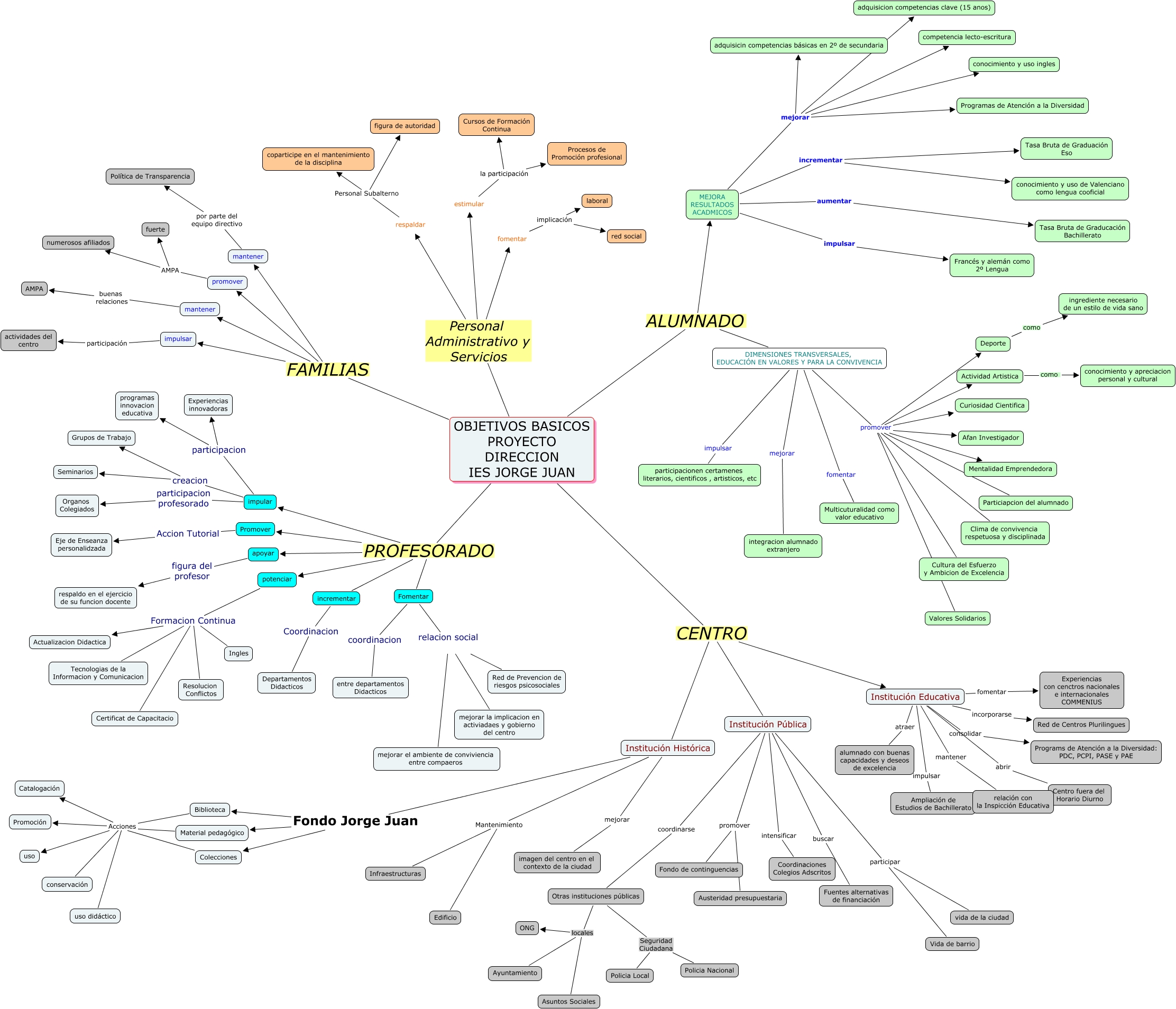 Este Cmap, tiene información relacionada con: Sin Título 2, Institución Pública buscar Fuentes alternativas de financiación, apoyar figura del profesor respaldo en el ejercicio de su funcion docente, estimular la participación Cursos de Formación Continua, impular creacion Seminarios, MEJORA RESULTADOS ACADMICOS impulsar Francés y alemán como 2º Lengua, mantener por parte del equipo directivo Política de Transparencia, Institución Educativa atraer alumnado con buenas capacidades y deseos de excelencia, impular participacion programas innovacion educativa, DIMENSIONES TRANSVERSALES, EDUCACIÓN EN VALORES Y PARA LA CONVIVENCIA promover Actividad Artistica, DIMENSIONES TRANSVERSALES, EDUCACIÓN EN VALORES Y PARA LA CONVIVENCIA mejorar integracion alumnado extranjero, OBJETIVOS BASICOS PROYECTO DIRECCION IES JORGE JUAN CENTRO Institución Educativa, estimular la participación Procesos de Promoción profesional, DIMENSIONES TRANSVERSALES, EDUCACIÓN EN VALORES Y PARA LA CONVIVENCIA promover Curiosidad Cientifica, Institución Pública coordinarse Otras instituciones públicas, promover AMPA fuerte, Biblioteca Acciones Catalogación, DIMENSIONES TRANSVERSALES, EDUCACIÓN EN VALORES Y PARA LA CONVIVENCIA promover Particiapcion del alumnado, impular participacion Experiencias innovadoras, Institución Educativa impulsar Ampliación de Estudios de Bachillerato, impular creacion Grupos de Trabajo