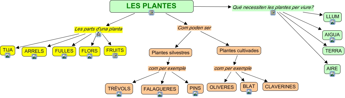 Aquest mapa conceptual conté informació relacionada amb: LES PLANTES, LES PLANTES Com poden ser Plantes cultivades, LES PLANTES Les parts d'una planta ARRELS, Plantes cultivades com per exemple CLAVERINES, LES PLANTES Què necessiten les plantes per viure? AIRE, LES PLANTES Com poden ser Plantes silvestres, Plantes cultivades com per exemple OLIVERES, LES PLANTES Les parts d'una planta FRUITS, Plantes silvestres com per exemple TRÈVOLS, LES PLANTES Les parts d'una planta FULLES, Plantes silvestres com per exemple PINS, LES PLANTES Què necessiten les plantes per viure? TERRA, Plantes cultivades com per exemple BLAT, LES PLANTES Les parts d'una planta TIJA, Plantes silvestres com per exemple FALAGUERES, LES PLANTES Què necessiten les plantes per viure? AIGUA, LES PLANTES Què necessiten les plantes per viure? LLUM, LES PLANTES Les parts d'una planta FLORS