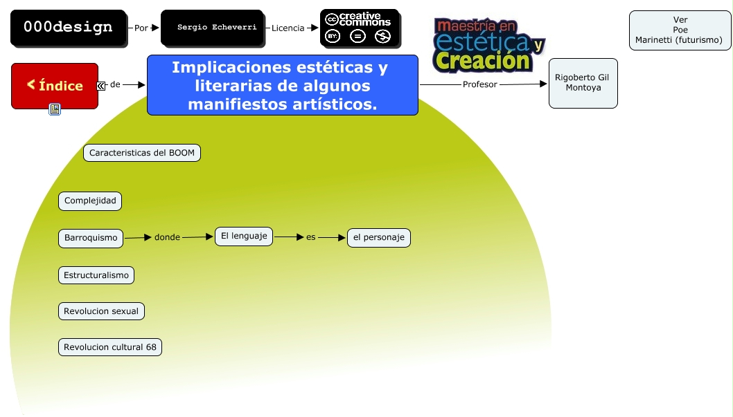 Este Cmap, tiene información relacionada con: Implicaciones Estéticas y literarias de algunos manifiestos artisticos, Sergio Echeverri Licencia, ???? de Implicaciones estéticas y literarias de algunos manifiestos artísticos., Implicaciones estéticas y literarias de algunos manifiestos artísticos. Profesor Rigoberto Gil Montoya, El lenguaje es el personaje, 000design Por Sergio Echeverri, Barroquismo donde El lenguaje
