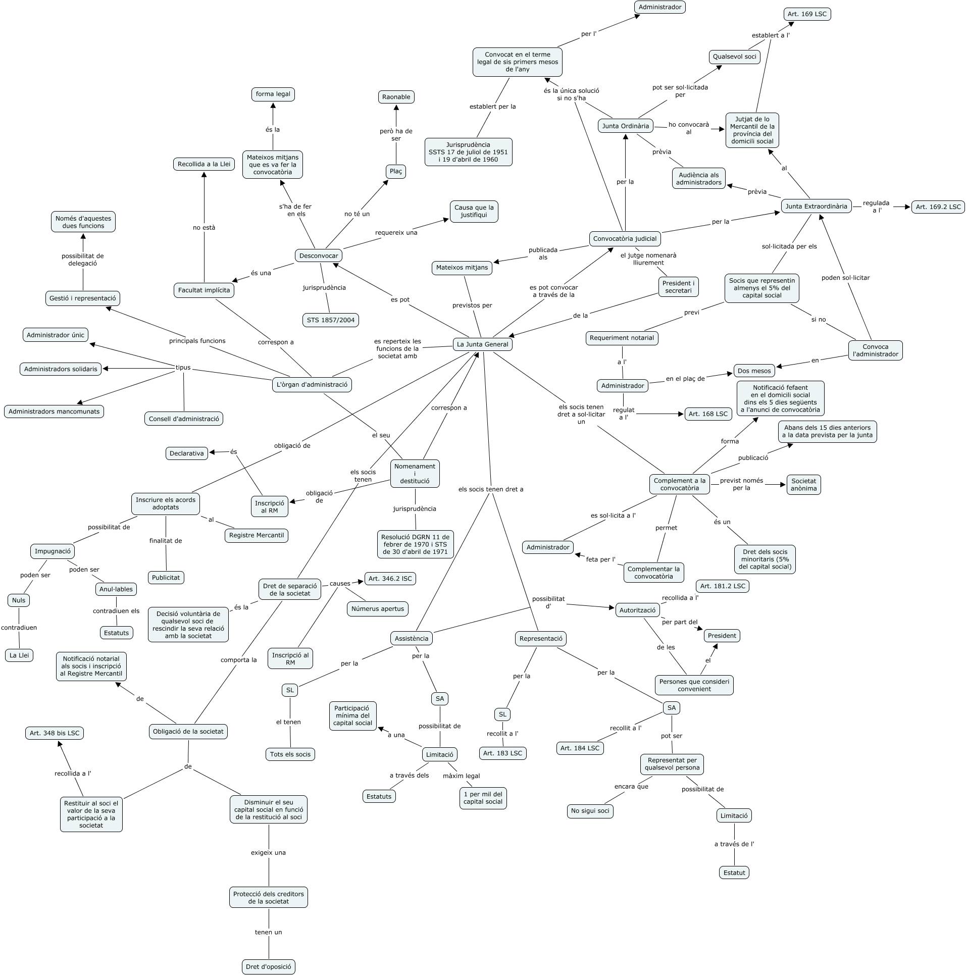Este Cmap, tiene información relacionada con: Escenari 5 Un mal tràngol, Facultat implícita correspon a L'òrgan d'administració, L'òrgan d'administració tipus Administradors solidaris, Assistència per la SL, Inscripció al RM és Declarativa, Junta Ordinària ho convocarà al Jutjat de lo Mercantil de la província del domicili social, Convoca l'administrador poden sol·licitar Junta Extraordinària, La Junta General es reperteix les funcions de la societat amb L'òrgan d'administració, L'òrgan d'administració principals funcions Gestió i representació, Assistència possibilitat d' Autorització, Inscriure els acords adoptats possibilitat de Impugnació, SL el tenen Tots els socis, Representació per la SL, Convocat en el terme legal de sis primers mesos de l'any establert per la Jurisprudència SSTS 17 de juliol de 1951 i 19 d'abril de 1960, Representat per qualsevol persona possibilitat de Limitació, Limitació a través dels Estatuts, Complementar la convocatòria feta per l' Administrador, Nomenament i destitució correspon a La Junta General, SA recollit a l' Art. 184 LSC, Complement a la convocatòria és un Dret dels socis minoritaris (5% del capital social), L'òrgan d'administració el seu Nomenament i destitució