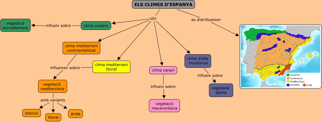 Aquest mapa conceptual conté informació relacionada amb: Els climes d'Espanya