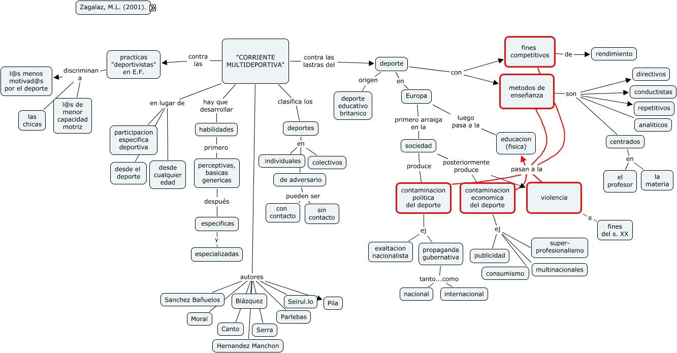 Este Cmap, tiene información relacionada con: corriente multideportiva (Zagalaz 2001), violencia pasan a la educacion (fisica), "CORRIENTE MULTIDEPORTIVA" en lugar de desde cualquier edad, habilidades primero perceptivas, basicas genericas, sociedad posteriormente produce contaminacion economica del deporte, metodos de enseñanza son analiticos, especificas y especializadas, de adversario pueden ser con contacto, "CORRIENTE MULTIDEPORTIVA" autores Canto, deporte con metodos de enseñanza, practicas "deportivistas" en E.F. discriminan a las chicas, perceptivas, basicas genericas después especificas, deportes en de adversario, metodos de enseñanza son directivos, contaminacion politica del deporte ej propaganda gubernativa, "CORRIENTE MULTIDEPORTIVA" autores Moral, "CORRIENTE MULTIDEPORTIVA" autores Pila, contaminacion economica del deporte ej super- profesionalismo, contaminacion politica del deporte ej exaltacion nacionalista, deportes en colectivos, centrados en la materia
