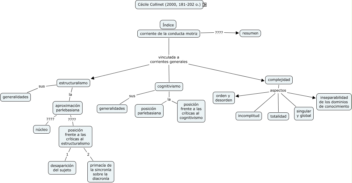 Este Cmap, tiene información relacionada con: Parlebas-1, complejidad aspectos totalidad, posición frente a las críticas al estructuralismo 2 primacía de la sincronía sobre la diacronía, complejidad aspectos incomplitud, posición frente a las críticas al estructuralismo 1 desaparición del sujeto, complejidad aspectos orden y desorden, complejidad aspectos singular y global, cognitivismo la posición frente a las críticas al cognitivismo, corriente de la conducta motriz vinculada a corrientes generales cognitivismo, estructuralismo sus generalidades, corriente de la conducta motriz ???? resumen, complejidad aspectos inseparabilidad de los dominios de conocimiento, estructuralismo la aproximación parlebasiana, corriente de la conducta motriz vinculada a corrientes generales estructuralismo, aproximación parlebasiana ???? posición frente a las críticas al estructuralismo, cognitivismo la posición parlebasiana, aproximación parlebasiana ???? núcleo, corriente de la conducta motriz vinculada a corrientes generales complejidad, cognitivismo sus generalidades