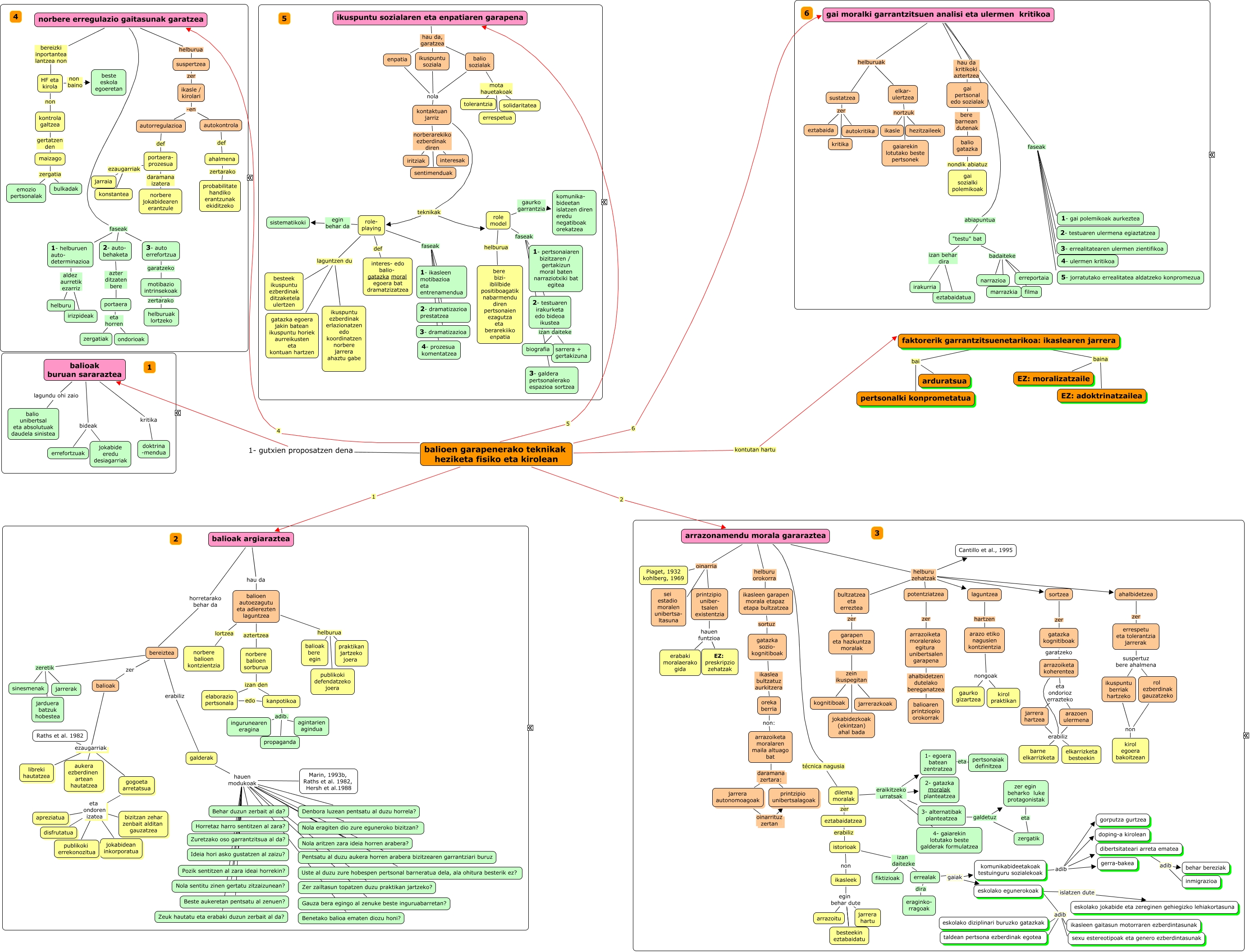 Este Cmap, tiene información relacionada con: Balioak garatzeko teknikak, galderak hauen modukoak Gauza bera egingo al zenuke beste inguruabarretan?, ikuspuntu soziala nola kontaktuan jarriz, balioen garapenerako teknikak heziketa fisiko eta kirolean 1- gutxien proposatzen dena balioak buruan sararaztea, role- playing faseak 1- ikasleen motibazioa eta entrenamendua, gogoeta arretatsua eta ondoren izatea disfrutatua, kontaktuan jarriz norberarekiko ezberdinak diren interesak, errealak dira eraginko- rragoak, balioen garapenerako teknikak heziketa fisiko eta kirolean 1 balioak argiaraztea, 1- egoera batean zentratzea eta pertsonaiak definitzea, role- playing laguntzen du ikuspuntu ezberdinak erlazionatzen edo koordinatzen norbere jarrera ahaztu gabe, faktorerik garrantzitsuenetarikoa: ikaslearen jarrera baina EZ: adoktrinatzailea, galderak hauen modukoak Nola sentitu zinen gertatu zitzaizunean?, zer egin beharko luke protagonistak eta zergatik, role- playing laguntzen du besteek ikuspuntu ezberdinak ditzaketela ulertzen, balioak buruan sararaztea bideak jokabide eredu desiagarriak, gai pertsonal edo sozialak bere barnean dutenak balio gatazka, arazoen ulermena erabiliz elkarrizketa besteekin, kanpotikoa adib. ingurunearen eragina, arrazoiketa koherentea erabiliz elkarrizketa besteekin, arrazonamendu morala gararaztea helburu zehatzak Cantillo et al., 1995