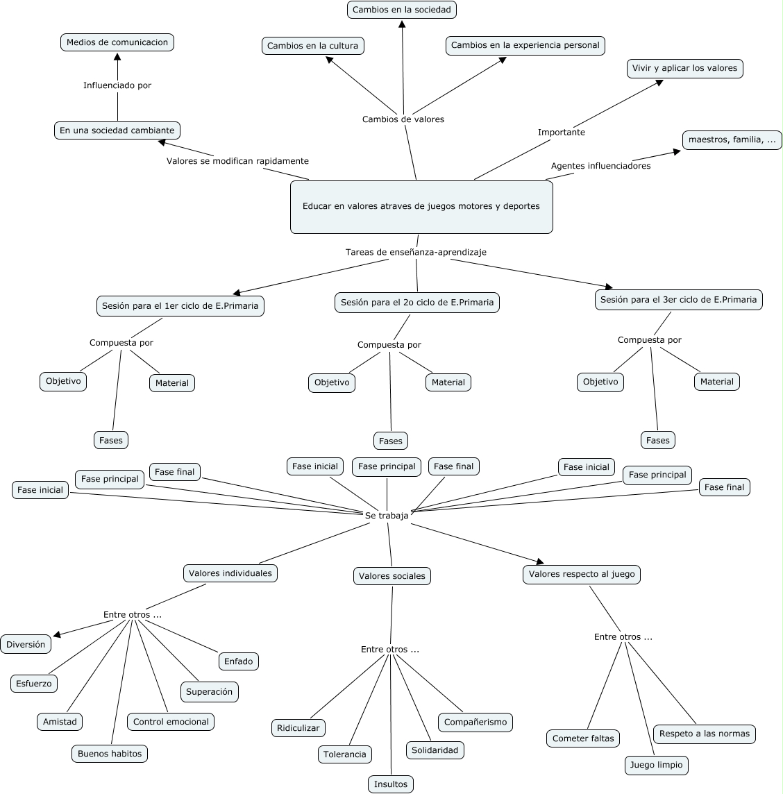 Este Cmap, tiene información relacionada con: Callado_Fortes_Mikel_CMap_G5, Fase principal Se trabaja Valores sociales, Valores sociales Entre otros ... Tolerancia, Educar en valores atraves de juegos motores y deportes Cambios de valores Cambios en la sociedad, Fase inicial Se trabaja Valores respecto al juego, Sesión para el 3er ciclo de E.Primaria Compuesta por Material, Sesión para el 2o ciclo de E.Primaria Compuesta por Fases, Sesión para el 2o ciclo de E.Primaria Compuesta por Objetivo, Valores individuales Entre otros ... Buenos habitos, Fase final Se trabaja Valores individuales, Valores respecto al juego Entre otros ... Juego limpio, Fase inicial Se trabaja Valores respecto al juego, Fase inicial Se trabaja Valores sociales, Valores sociales Entre otros ... Insultos, Valores individuales Entre otros ... Enfado, Fase final Se trabaja Valores respecto al juego, Fase principal Se trabaja Valores individuales, Valores respecto al juego Entre otros ... Respeto a las normas, Fase inicial Se trabaja Valores individuales, Educar en valores atraves de juegos motores y deportes Valores se modifican rapidamente En una sociedad cambiante, Fase principal Se trabaja Valores respecto al juego