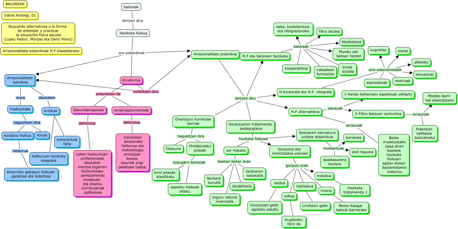 Este Cmap, tiene información relacionada con: Aristegi_Aragon_Iratxe_cmap01, Orientazio kurrikular berriak nagusitzen dira Moldatutako jolasak, H.F alternatiboa pausuak 1-Kendu beharreko aspektuak zehaztu, Gorputza eta motrizitatea eskolan gorputz erak tresna, H.korporala eta H.F. integrala arlo ezberdinetatik emozional, Moldatutako jolasak ezaugarri bereziak aspektu klabeak aldatu, 2-Filtro batzuen sorkuntza arrazoiak Praktiken kalitatea baloratzeko, baloreak lantzen dira Heziketa fisikoa, Erreforma arduratzen da errekreazionismoak, H.F eta baloreen heziketa baloreak Mundu zail batean hezten, Gorputza eta motrizitatea eskolan gorputz erak soltea, tradizionala nagusitzen dira Kondizio fisikoa, 2-Filtro batzuen sorkuntza arrazoiak Modelo berri bat diseinatzeko, Arrazionalitate praktikoa lantzen ditu Gorputzaren tratamendu pedagogikoa, Gorputzaren tratamendu pedagogikoa heziketa fisikoan Sesioaren estruktura unitate didaktikoa, Orientazio kurrikular berriak nagusitzen dira Osasuna, H.F eta baloreen heziketa baloreak bake, konbibentzia eta integraziorako, Heziketa fisikoa era ezberdinak Erreforma, H.korporala eta H.F. integrala arlo ezberdinetatik afektibo, tradizionala nagusitzen dira Kirola, isildua ???? Gorputzari geldi egoteko eskatu