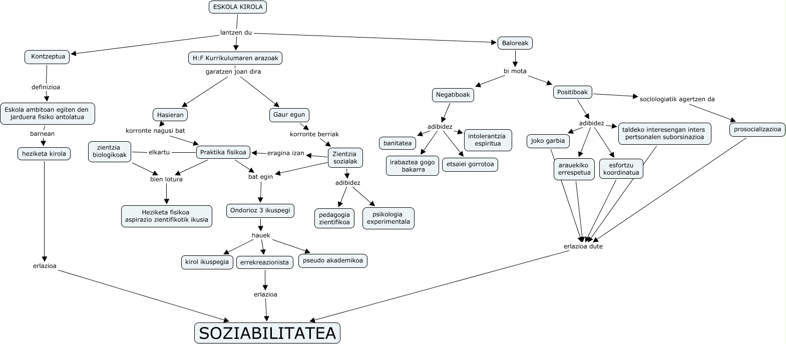 Este Cmap, tiene información relacionada con: aitor_robles_alvarez_cmap_T11, Eskola ambitoan egiten den jarduera fisiko antolatua barnean heziketa kirola, errekreazionista erlazioa SOZIABILITATEA, H:F Kurrikulumaren arazoak garatzen joan dira Gaur egun, Negatiboak adibidez etsaiei gorrotoa, Praktika fisikoa elkartu zientzia biologikoak, Zientzia sozialak bat egin Ondorioz 3 ikuspegi, Baloreak bi mota Positiboak, Ondorioz 3 ikuspegi hauek errekreazionista, ESKOLA KIROLA lantzen du Kontzeptua, Negatiboak adibidez intolerantzia espiritua, zientzia biologikoak bien lotura Heziketa fisikoa aspirazio zientifikotik ikusia, heziketa kirola erlazioa SOZIABILITATEA, esfortzu koordinatua erlazioa dute SOZIABILITATEA, H:F Kurrikulumaren arazoak garatzen joan dira Hasieran, Praktika fisikoa bien lotura Heziketa fisikoa aspirazio zientifikotik ikusia, Zientzia sozialak eragina izan Praktika fisikoa, Positiboak adibidez esfortzu koordinatua, Ondorioz 3 ikuspegi hauek pseudo akademikoa, Positiboak sociologiatik agertzen da prosocializazioa, Negatiboak adibidez irabaztea gogo bakarra