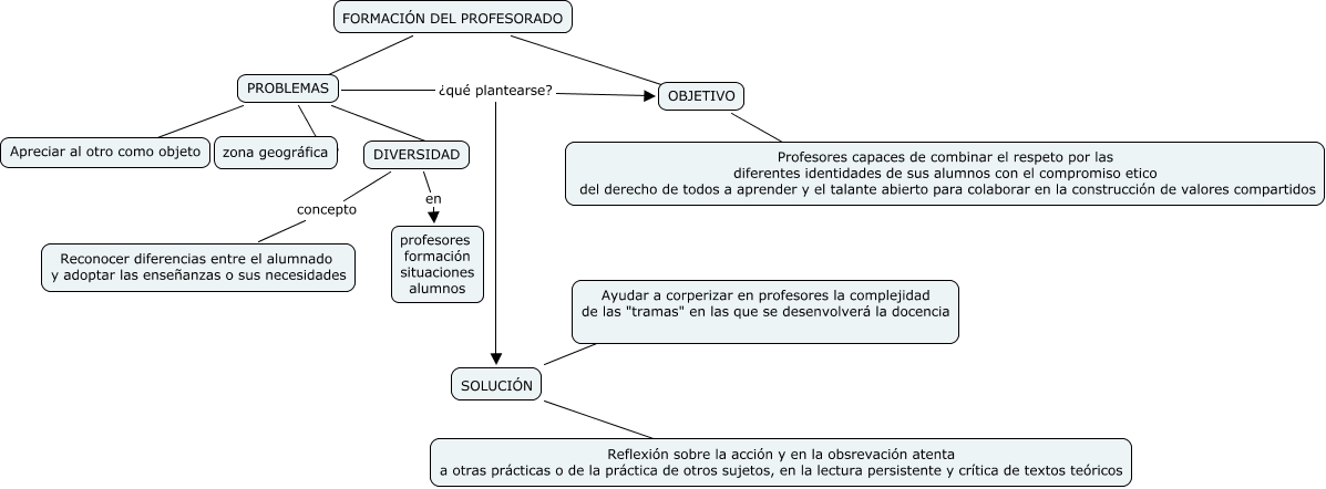 Este Cmap, tiene información relacionada con: JARAUTA_MAGANA_PATRICIA_G3, SOLUCIÓN ???? Ayudar a corperizar en profesores la complejidad de las "tramas" en las que se desenvolverá la docencia, DIVERSIDAD concepto Reconocer diferencias entre el alumnado y adoptar las enseñanzas o sus necesidades, FORMACIÓN DEL PROFESORADO ???? PROBLEMAS, PROBLEMAS ¿qué plantearse? OBJETIVO, FORMACIÓN DEL PROFESORADO ???? OBJETIVO, SOLUCIÓN ???? Reflexión sobre la acción y en la obsrevación atenta a otras prácticas o de la práctica de otros sujetos, en la lectura persistente y crítica de textos teóricos, PROBLEMAS ???? DIVERSIDAD, PROBLEMAS ¿qué plantearse? SOLUCIÓN, PROBLEMAS ???? zona geográfica, DIVERSIDAD en profesores formación situaciones alumnos, OBJETIVO ???? Profesores capaces de combinar el respeto por las diferentes identidades de sus alumnos con el compromiso etico del derecho de todos a aprender y el talante abierto para colaborar en la construcción de valores compartidos, PROBLEMAS ???? Apreciar al otro como objeto