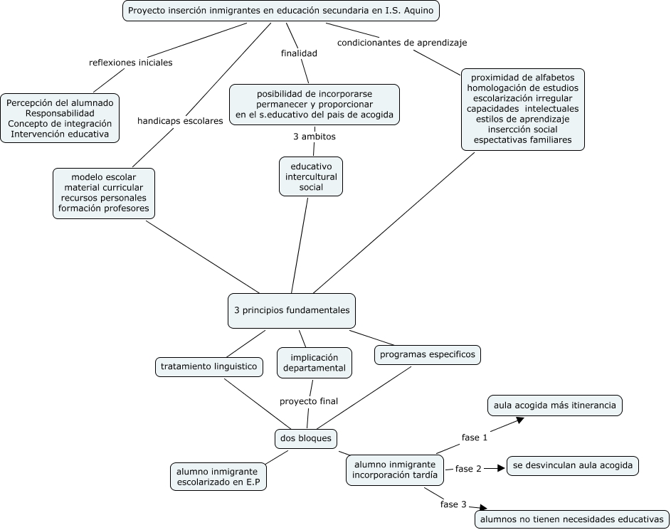 Este Cmap, tiene información relacionada con: GOMEZ_ZAMARRENO_BORJA_G.3, posibilidad de incorporarse permanecer y proporcionar en el s.educativo del pais de acogida 3 ambitos educativo intercultural social, Proyecto inserción inmigrantes en educación secundaria en I.S. Aquino condicionantes de aprendizaje proximidad de alfabetos homologación de estudios escolarización irregular capacidades intelectuales estilos de aprendizaje insercción social espectativas familiares, Proyecto inserción inmigrantes en educación secundaria en I.S. Aquino handicaps escolares modelo escolar material curricular recursos personales formación profesores, Proyecto inserción inmigrantes en educación secundaria en I.S. Aquino reflexiones iniciales Percepción del alumnado Responsabilidad Concepto de integración Intervención educativa, alumno inmigrante incorporación tardía fase 1 aula acogida más itinerancia, tratamiento linguistico ???? dos bloques, programas especificos ???? dos bloques, implicación departamental proyecto final dos bloques, modelo escolar material curricular recursos personales formación profesores ???? 3 principios fundamentales, dos bloques ???? alumno inmigrante incorporación tardía, 3 principios fundamentales ???? tratamiento linguistico, 3 principios fundamentales ???? programas especificos, 3 principios fundamentales ???? implicación departamental, alumno inmigrante incorporación tardía fase 3 alumnos no tienen necesidades educativas, educativo intercultural social ???? 3 principios fundamentales, alumno inmigrante incorporación tardía fase 2 se desvinculan aula acogida, dos bloques ???? alumno inmigrante escolarizado en E.P, proximidad de alfabetos homologación de estudios escolarización irregular capacidades intelectuales estilos de aprendizaje insercción social espectativas familiares ???? 3 principios fundamentales, Proyecto inserción inmigrantes en educación secundaria en I.S. Aquino finalidad posibilidad de incorporarse permanecer y proporcionar en el s.educativo del pais de acogida