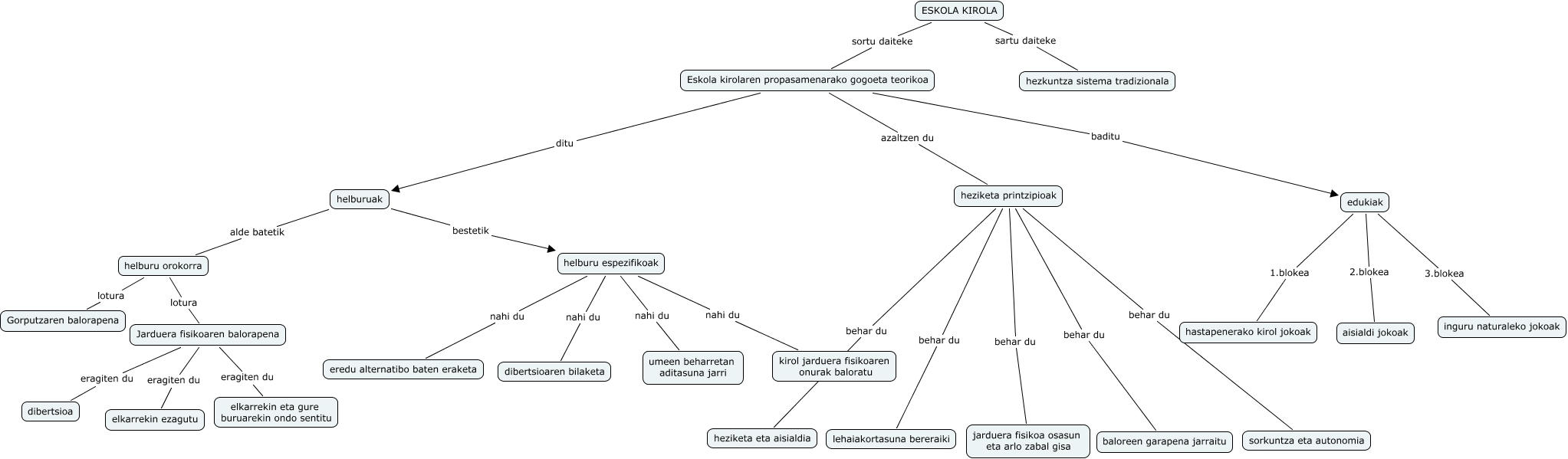 Este Cmap, tiene información relacionada con: garcia_pesquera_ibai_cmap_T11, helburuak alde batetik helburu orokorra, heziketa printzipioak behar du heziketa eta aisialdia, ESKOLA KIROLA sortu daiteke Eskola kirolaren propasamenarako gogoeta teorikoa, helburuak bestetik helburu espezifikoak, helburu espezifikoak nahi du eredu alternatibo baten eraketa, helburu orokorra lotura Jarduera fisikoaren balorapena, helburu espezifikoak nahi du kirol jarduera fisikoaren onurak baloratu, edukiak 2.blokea aisialdi jokoak, Eskola kirolaren propasamenarako gogoeta teorikoa ditu helburuak, heziketa printzipioak behar du baloreen garapena jarraitu, edukiak 3.blokea inguru naturaleko jokoak, heziketa printzipioak behar du sorkuntza eta autonomia, Jarduera fisikoaren balorapena eragiten du dibertsioa, Jarduera fisikoaren balorapena eragiten du elkarrekin eta gure buruarekin ondo sentitu, Eskola kirolaren propasamenarako gogoeta teorikoa baditu edukiak, Jarduera fisikoaren balorapena eragiten du elkarrekin ezagutu, Eskola kirolaren propasamenarako gogoeta teorikoa azaltzen du heziketa printzipioak, helburu espezifikoak nahi du umeen beharretan aditasuna jarri, heziketa printzipioak behar du jarduera fisikoa osasun eta arlo zabal gisa, edukiak 1.blokea hastapenerako kirol jokoak