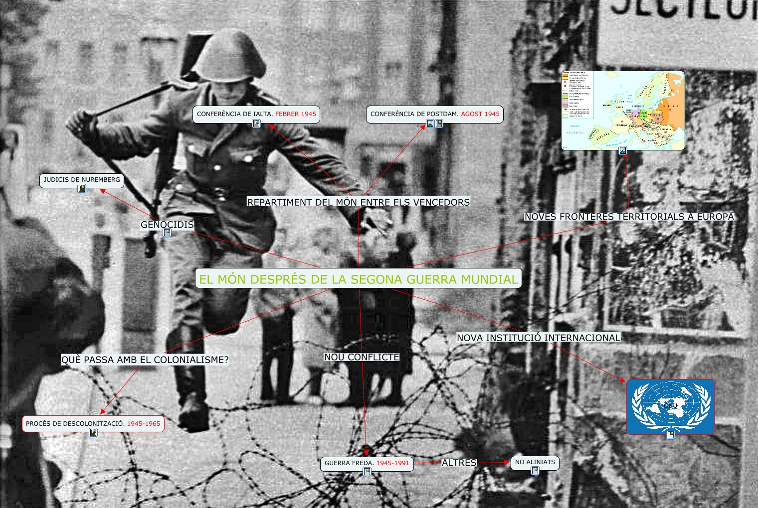Este Cmap, tiene información relacionada con: El Món després de la Segona Guerra Mundial, EL MÓN DESPRÉS DE LA SEGONA GUERRA MUNDIAL NOVA INSTITUCIÓ INTERNACIONAL ONU, EL MÓN DESPRÉS DE LA SEGONA GUERRA MUNDIAL QUÈ PASSA AMB EL COLONIALISME? PROCÉS DE DESCOLONITZACIÓ. 1945-1965, EL MÓN DESPRÉS DE LA SEGONA GUERRA MUNDIAL GENOCIDIS JUDICIS DE NUREMBERG, EL MÓN DESPRÉS DE LA SEGONA GUERRA MUNDIAL REPARTIMENT DEL MÓN ENTRE ELS VENCEDORS CONFERÈNCIA DE POSTDAM. AGOST 1945, EL MÓN DESPRÉS DE LA SEGONA GUERRA MUNDIAL REPARTIMENT DEL MÓN ENTRE ELS VENCEDORS CONFERÈNCIA DE IALTA. FEBRER 1945, GUERRA FREDA. 1945-1991 ALTRES NO ALINIATS, EL MÓN DESPRÉS DE LA SEGONA GUERRA MUNDIAL NOU CONFLICTE GUERRA FREDA. 1945-1991, EL MÓN DESPRÉS DE LA SEGONA GUERRA MUNDIAL NOVES FRONTERES TERRITORIALS A EUROPA