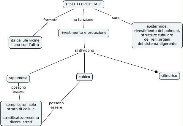 Questa Cmap, creata con IHMC CmapTools, contiene informazioni relative a: tessuti epiteliale, rivestimento e protezione si dividono squamosa, rivestimento e protezione si dividono cubico, cubico possono essere semplice:un solo strato di cellule stratificato:presenta diversi strati, TESUTO EPITELIALE formato da cellule vicine l'una con l'altra, TESUTO EPITELIALE sono epidermide, rivestimento dei polmoni, strutture tubulare dei reni,organi del sistema digerente, squamosa possono essere semplice:un solo strato di cellule stratificato:presenta diversi strati, rivestimento e protezione si dividono cilindrico, TESUTO EPITELIALE ha funzione rivestimento e protezione