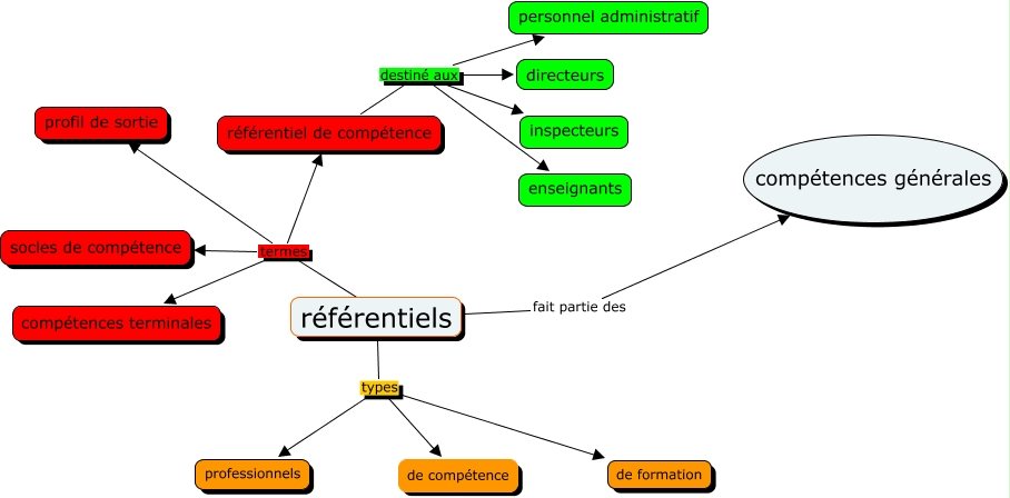 Cette carte de concepts créée avec IHMC CmapTools traite de: curricula map agnes, référentiels fait partie des compétences générales, référentiel de compétence destiné aux enseignants, référentiel de compétence destiné aux directeurs, référentiels types professionnels, ???? termes compétences terminales, référentiel de compétence destiné aux inspecteurs, ???? termes socles de compétence, référentiel de compétence destiné aux personnel administratif, ???? termes profil de sortie, référentiels types de formation, ???? termes référentiel de compétence, référentiels types de compétence