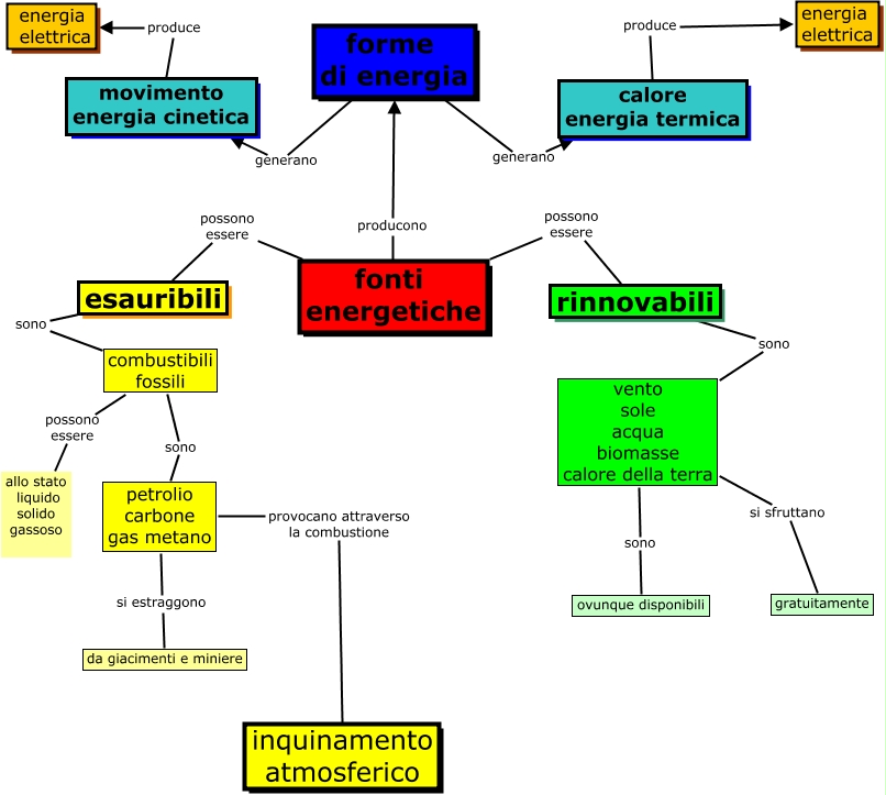Questa Cmap, creata con IHMC CmapTools, contiene informazioni relative a: fonti energetiche, petrolio carbone gas metano provocano attraverso la combustione inquinamento atmosferico, vento sole acqua biomasse calore della terra si sfruttano gratuitamente, fonti energetiche possono essere rinnovabili, calore energia termica produce energia elettrica, fonti energetiche producono forme di energia, forme di energia generano calore energia termica, vento sole acqua biomasse calore della terra sono ovunque disponibili, petrolio carbone gas metano si estraggono da giacimenti e miniere, combustibili fossili sono petrolio carbone gas metano, fonti energetiche possono essere esauribili, combustibili fossili possono essere allo stato liquido solido gassoso, rinnovabili sono vento sole acqua biomasse calore della terra, forme di energia generano movimento energia cinetica, movimento energia cinetica produce energia elettrica, esauribili sono combustibili fossili