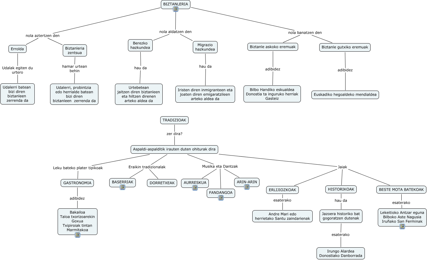 Este Cmap, tiene información relacionada con: Biztanleria eta Tradizioak, BIZTANLERIA nola banatzen den Biztanle gutxiko eremuak, HISTORIKOAK hau da Jazoera historiko bat gogoratzen dutenak, BESTE MOTA BATEKOAK esaterako Lekeitioko Antzar eguna Bilboko Aste Nagusia Iruñako San Ferminak, Aspaldi-aspalditik irauten duten ohiturak dira Jaiak ERLIJIOZKOAK, Migrazio hazkundea hau da Iristen diren inmigranteen eta joaten diren emigaratzileen arteko aldea da, Aspaldi-aspalditik irauten duten ohiturak dira Musika eta Dantzak AURRESKUA, Biztanle askoko eremuak adibidez Bilbo Handiko eskualdea Donostia ta inguruko herriak Gasteiz, ERLIJIOZKOAK esaterako Andre Mari edo herrietako Santu zaindarienak, Berezko hazkundea hau da Urtebetean jaitzen diren biztanleen eta hiltzen direnen arteko aldea da, BIZTANLERIA nola banatzen den Biztanle askoko eremuak, Aspaldi-aspalditik irauten duten ohiturak dira Jaiak BESTE MOTA BATEKOAK, GASTRONOMIA adibidez Bakailoa Taloa txorizoarekin Goxua Txipiroiak tintan Marmitakoa, Biztanleria zentsua hamar urtean behin Udalerri, probintzia edo herrialde batean bizi diren biztanleen zerrenda da, TRADIZIOAK zer dira? Aspaldi-aspalditik irauten duten ohiturak dira, Aspaldi-aspalditik irauten duten ohiturak dira Jaiak HISTORIKOAK, BIZTANLERIA nola aldatzen den Migrazio hazkundea, BIZTANLERIA nola aztertzen den Errolda, Aspaldi-aspalditik irauten duten ohiturak dira Leku bateko plater tipikoak GASTRONOMIA, BIZTANLERIA nola aztertzen den Biztanleria zentsua, Aspaldi-aspalditik irauten duten ohiturak dira Musika eta Dantzak ARIN-ARIN