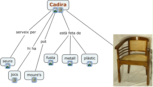 Aquest mapa conceptual conté informació relacionada amb: Copia de Cadira, Cadira, Cadira pot moure's, Cadira serveix per seure, Cadira està feta de plàstic, Cadira està feta de metall, Cadira està feta de fusta, Cadira hi ha jocs