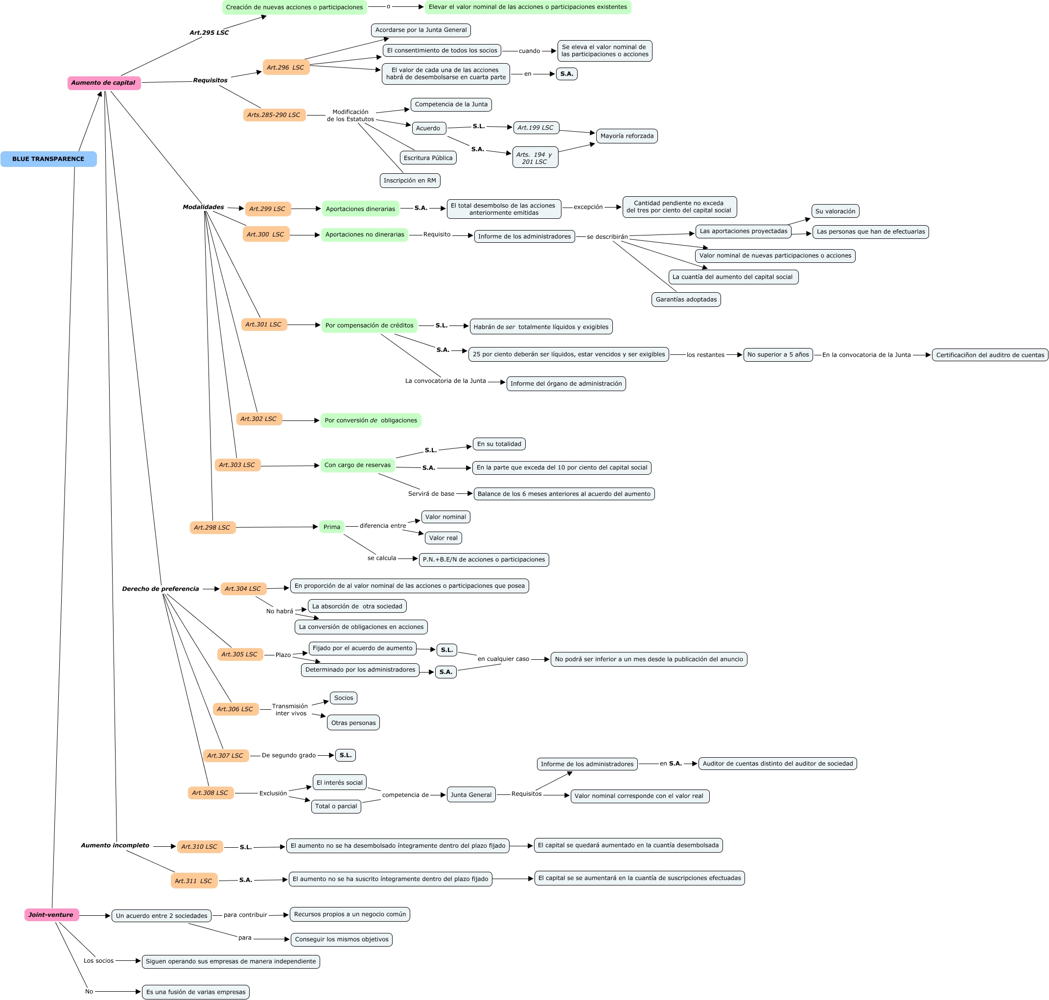 Este Cmap, tiene información relacionada con: Caso 8, Arts. 194 y 201 LSC ???? Mayoría reforzada, No superior a 5 años En la convocatoria de la Junta Certificaciñon del auditro de cuentas, Con cargo de reservas S.L. En su totalidad, Art.306 LSC Transmisión inter vivos Otras personas, Art.296 LSC ???? El valor de cada una de las acciones habrá de desembolsarse en cuarta parte, Arts.285-290 LSC Modificación de los Estatutos Acuerdo, Art.199 LSC ???? Mayoría reforzada, Art.298 LSC ???? Prima, Aumento de capital Derecho de preferencia Art.305 LSC, Art.308 LSC Exclusión El interés social, Aportaciones dinerarias S.A. El total desembolso de las acciones anteriormente emitidas, Acuerdo S.A. Arts. 194 y 201 LSC, Art.299 LSC ???? Aportaciones dinerarias, S.L. en cualquier caso No podrá ser inferior a un mes desde la publicación del anuncio, Aumento de capital Aumento incompleto Art.311 LSC, Por compensación de créditos S.L. Habrán de ser totalmente líquidos y exigibles, Art.303 LSC ???? Con cargo de reservas, Aumento de capital Derecho de preferencia Art.308 LSC, Art.306 LSC Transmisión inter vivos Socios, Determinado por los administradores ???? S.A.