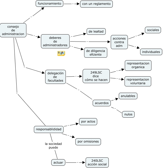 This Concept Map, created with IHMC CmapTools, has information related to: caso 9, acciones contra adm . sociales, delegación de facultades . acuerdos, responsablididad la sociedad puede actuar, acuerdos . nulos, deberes de administradores . de diligencia efciente, delegación de facultades . 249LSC dice cómo se hacen, acuerdos . anulables, consejo de administracion . responsablididad, consejo de administracion . delegación de facultades, funcionamiento . con un reglamento, consejo de administracion . funcionamiento, responsablididad . por actos, 249LSC dice cómo se hacen . representacion voluntaria, deberes de administradores . acciones contra adm, 249LSC dice cómo se hacen . representacion organica, actuar . 240LSC acción social, responsablididad . por omisiones, acciones contra adm . individuales, deberes de administradores . de lealtad, consejo de administracion . deberes de administradores