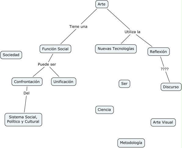 Este Cmap, tiene información relacionada con: Arte, Arte Tiene una Función Social, Arte Utiliza la Nuevas Tecnologías, Reflexión ???? Discurso, Función Social Puede ser Confrontación, Arte Utiliza la Reflexión, Confrontación Del Sistema Social, Político y Cultural, Función Social Puede ser Unificación