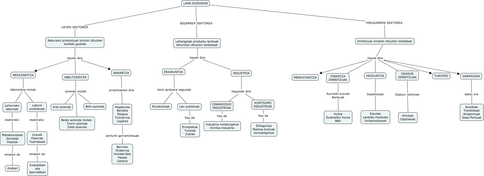 Este Cmap, tiene información relacionada con: Lana Euskadin, Naturako produktuak lortzen dituzten lanbide guztiak hauek dira ARRANTZA, OSASUN ZERBITZUAK Osasun zentroak Klinikak Ospitaleak, Naturako produktuak lortzen dituzten lanbide guztiak hauek dira NEKAZARITZA, Urazak Piperrak Toamateak ematen da Kostaldean eta Iparraldean, INDUSTRIA nagusiak dira OINARRIZKO INDUSTRIAK, NEKAZARITZA laborantza motak Labore ureztatuak, HEZKUNTZA Ikastetxeak Eskolak Lanbide-Heziketa Unibertsitateak, GARRAIOAK batez ere Autobiak Trenbideak Aireportuak Itsas-Portuak, ERAIKUNTZA bere jarduera nagusiak Lan publikoak, Zerbitzuak ematen dituzten lanbideak hauek dira TURISMO, Mahatsondoak Zerealak Patatak ematen da Araban, Zerbitzuak ematen dituzten lanbideak hauek dira FINANTZA ZERBITZUAK, ABELTZAINTZA azienda motak Behi-azienda, Lehorreko laboreak esaterako Mahatsondoak Zerealak Patatak, KONTSUMO INDUSTRIAK hau da Elikagintza Makina-tresnak itomobilgintza, ARRANTZA arrantzatzen dira Hegaluzea Berdela Bisigua Txitxarroa Legatza, Naturako produktuak lortzen dituzten lanbide guztiak hauek dira ABELTZAINTZA, Lehengaiak produktu landuak bihurtzen dituzten lanbideak hauek dira INDUSTRIA, LANA EUSKADIN LEHEN SEKTOREA Naturako produktuak lortzen dituzten lanbide guztiak, Hegaluzea Berdela Bisigua Txitxarroa Legatza porturik garrantzitsuak Bermeo Ondarroa Hondarribia Pasaia Getaria