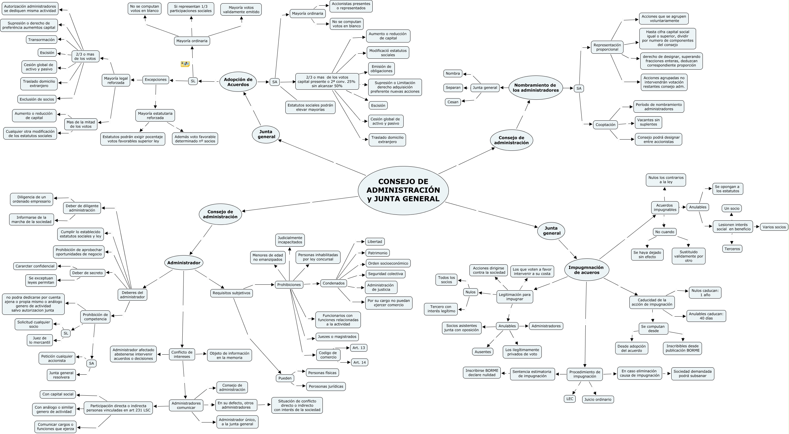 Este Cmap, tiene información relacionada con: Escenario 6 Consejo de administración (revisado), SL Excepciones, Condenados Por su cargo no puedan ejercer comercio, Conflicto de intereses Objeto de información en la memoria, 2/3 o mas de los votos capital presente o 2ª conv. 25% sin alcanzar 50% Escisión, Legitimación para impugnar Acciones dirigirse contra la sociedad, Cooptación Período de nombramiento administradores, Deber de diligente administración Informarse de la marcha de la sociedad, 2/3 o mas de los votos capital presente o 2ª conv. 25% sin alcanzar 50% Cesión global de activo y pasivo, Anulables Se opongan a los estatutos, Sentencia estimatoria de impugnación Inscribirse BORME declare nulidad, Deberes del administrador Deber de diligente administración, Junta general Separan, Legitimación para impugnar Anulables, Prohibición de competencia SL, Excepciones Mayoría legal reforzada, Condenados Orden socioeconómico, No cuando Sustituido validamente por otro, Deberes del administrador Prohibición de aprobechar oportunidades de negocio, Anulables Administradores, Se computan desde Desde adopción del acuerdo