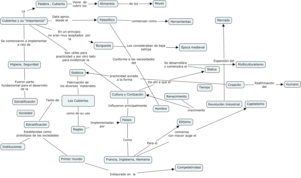 Este Cmap, tiene información relacionada con: Proyecto importanacia boceto, Alimentos de los Reyes, Primer mundo Instaurado en la Competetividad, Estètica Fabricación de los diversos materiales Los Cubiertos, Francia, Inglaterra, Alemania comienza con mayor auge el Capitalismo, Revoluciòn Industrial Expansiòn del Mercado, Los Cubiertos como de su uso Reglas, Cubiertos y su "importancia" La Palabra , Cubierto, Cubiertos y su "importancia" En un principio no eran muy aceptados por la Burguesía, Palabra , Cubierto Viene de cubrir los Alimentos, Instituciones Establecidas como prototipos de las sociedades Primer mundo, Creaciòn practicidad aunado a la forma Estètica, Cubiertos y su "importancia" Se comenzaron a implementar a raíz de Higiene, Seguridad, Burguesía Los consideraban de baja estirpe Época medieval, Paleolítico comienzan como Herramientas, Reglas Implementadas por Países, Cubiertos y su "importancia" Data aprox. desde el Paleolítico, Renacimiento crecimiento Cultura y Civilización, Francia, Inglaterra, Alemania Para el Elitismo, Paleolítico Conforme a las necesidades del Hombre, Creaciòn Reafirmaciòn del Humano