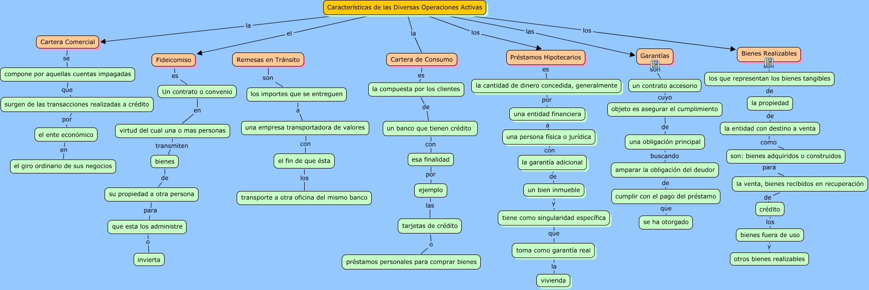 Este Cmap, tiene información relacionada con: Características de las diversas operacionesVictor B, una persona física o jurídica con la garantía adicional, la entidad con destino a venta como son: bienes adquiridos o construidos, un contrato accesorio cuyo objeto es asegurar el cumplimiento, una entidad financiera a una persona física o jurídica, bienes de su propiedad a otra persona, los que representan los bienes tangibles de la propiedad, la venta, bienes recibidos en recuperación de crédito, amparar la obligación del deudor de cumplir con el pago del préstamo, Características de las Diversas Operaciones Activas la Cartera de Consumo, bienes fuera de uso y otros bienes realizables, Características de las Diversas Operaciones Activas la Cartera Comercial, cumplir con el pago del préstamo que se ha otorgado, su propiedad a otra persona para que esta los administre, virtud del cual una o mas personas transmiten bienes, la garantía adicional de un bien inmueble, Cartera Comercial se compone por aquellas cuentas impagadas, esa finalidad por ejemplo, crédito los bienes fuera de uso, Garantías son un contrato accesorio, compone por aquellas cuentas impagadas que surgen de las transacciones realizadas a crédito