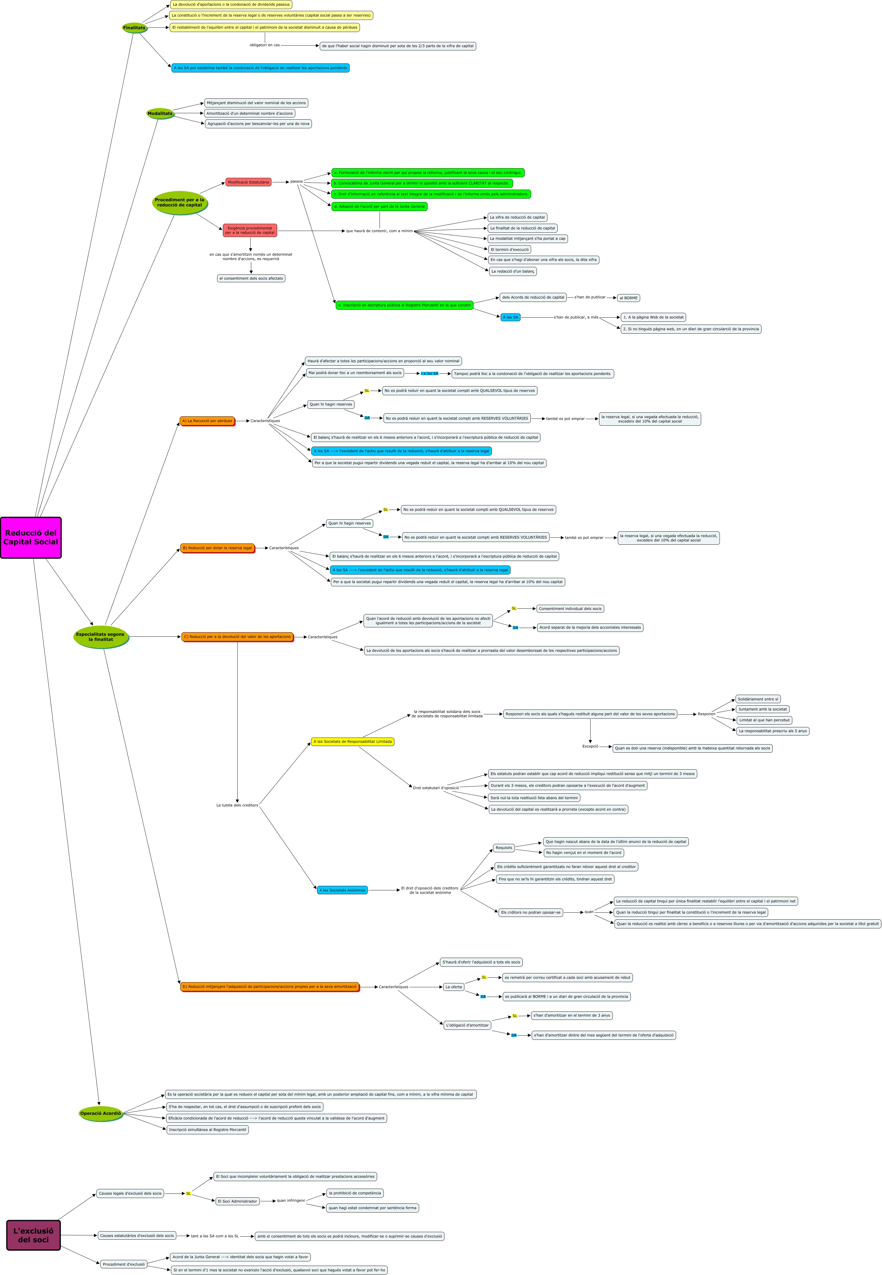Este Cmap, tiene información relacionada con: Cas 10 Lluís Ricart, A) La Recucció per pèrdues Característiques Quan hi hagin reserves, A les Societats de Responsabilitat Limitada la responsabilitat solidaria dels socis de societats de responsabilitat limitada Responen els socis als quals s'hagués restituit alguna part del valor de les seves aportacions, A les SA s'han de publicar, a més 1. A la pàgina Web de la societat, A) La Recucció per pèrdues Característiques Haurà d'afectar a totes les participacions/accions en proporció al seu valor nominal, A les Societats de Responsabilitat Limitada Dret estatutari d'oposició La devolució del capital es realitzarà a prorrata (excepte acord en contra), Reducció del Capital Social Especialitats segons la finalitat B) Reducció per dotar la reserva legal, C) Reducció per a la devolució del valor de les aportacions La tutela dels creditors A les Societats de Responsabilitat Limitada, Reducció del Capital Social Finalitats La devolució d'aportacions o la condonació de dividends passius, Els crditors no podran oposar-se quan Quan la reducció tingui per finalitat la constitució o l'increment de la reserva legal, A) La Recucció per pèrdues Característiques Mai podrà donar lloc a un reemborsament als socis, Quan hi hagin reserves SL No es podrà reduir en quant la societat compti amb QUALSEVOL tipus de reserves, Requisits ???? Que hagin nascut abans de la data de l'últim anunci de la reducció de capital, Reducció del Capital Social Operació Acordió Es la operació societària per la qual es redueix el capital per sota del mínim legal, amb un posterior ampliació de capital fins, com a mínim, a la xifra mínima de capital, Modificació Estatutària passos b. Convocatòria de Junta General per a dirimir la qüestió amb la suficient CLARITAT al respecte., d. Adopció de l’acord per part de la Junta General que haurà de contenir, com a mínim En cas que s'hagi d'abonar una xifra als socis, la dita xifra, L'obligació d'amortitzar SA s'han d'amortitzar dintre del mes següent del termini de l'oferta d'adquisició, Els crditors no podran oposar-se quan La reducció de capital tinqui per única finalitat restablir l'equilibri entre el capital i el patrimoni net, A les Societats Anònimes El dret d'oposició dels creditors de la societat anònima Fins que no se'ls hi garantitzin els crèdits, tindran aquest dret, A les Societats Anònimes El dret d'oposició dels creditors de la societat anònima Els crèdits suficientment garantitzats no faran nèixer aquest dret al creditor, Mai podrà donar lloc a un reemborsament als socis i a les SA Tampoc podrà lloc a la condonació de l'obligació de realitzar les aportacions pendents