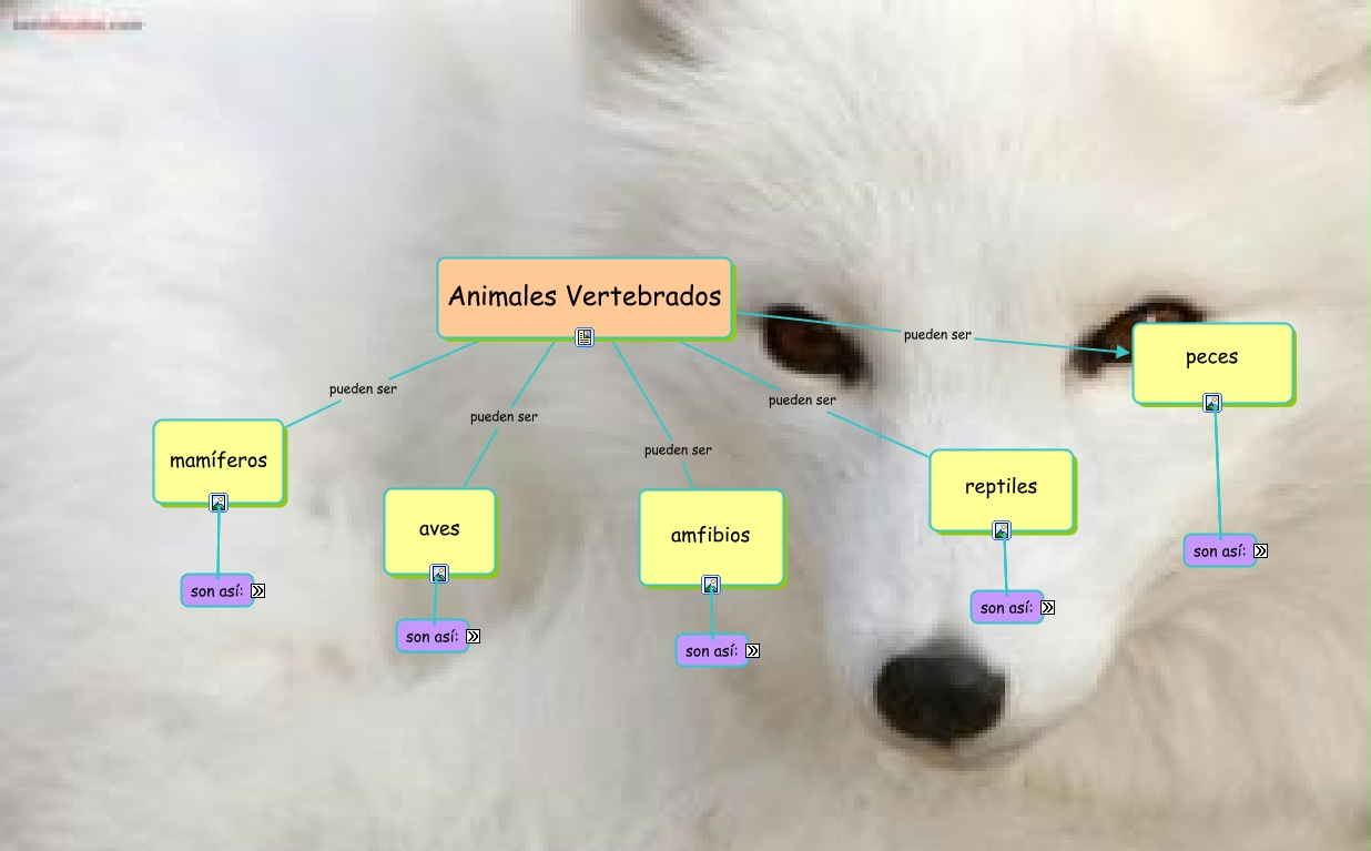 Este Cmap, tiene información relacionada con: los animales vertebrados, Animales Vertebrados pueden ser reptiles, reptiles tienen el cuerpo cubierto de escamas duras, peces se reproducen con huevos: son ovíparos, Animales Vertebrados pueden ser mamíferos, Animales Vertebrados pueden ser peces, amfibios respiran por la piel y pulmones, mamíferos respiran por pulmones, Animales Vertebrados pueden ser aves, peces respiran por branquias, Animales Vertebrados pueden ser amfibios, aves respiran con pulmones, mamíferos tienen el cuerpo cubierto de pelo, reptiles se reproducen con huevos: son ovíparos, amfibios se reproducen con huevos: son ovíparos, mamíferos se reproducen nacen del vientre de la madre: son vivíparos, aves se reproducen con huevos: son ovíparos, peces tienen el cuerpo cubierto de escamas, reptiles respiran por la piel y pulmones, amfibios tienen el cuerpo la piel lisa, aves tienen el cuerpo cubierto de plumas
