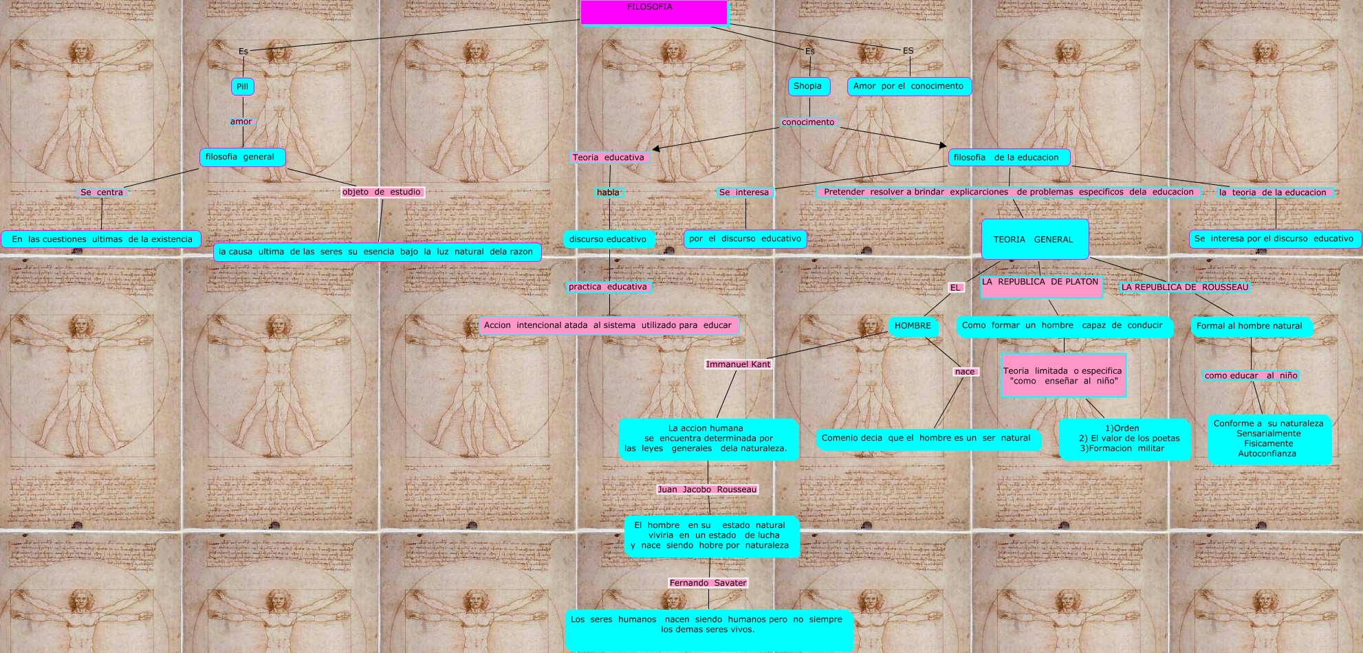 Este Cmap, tiene información relacionada con: visto en clases, Shopia conocimento Teoria educativa, Como formar un hombre capaz de conducir Teoria limitada o especifica "como enseñar al niño" 1)Orden 2) El valor de los poetas 3)Formacion militar, TEORIA GENERAL EL HOMBRE, Formal al hombre natural como educar al niño Conforme a su naturaleza Sensarialmente Fisicamente Autoconfianza, El hombre en su estado natural viviria en un estado de lucha y nace siendo hobre por naturaleza Fernando Savater Los seres humanos nacen siendo humanos pero no siempre los demas seres vivos., La accion humana se encuentra determinada por las leyes generales dela naturaleza. Juan Jacobo Rousseau El hombre en su estado natural viviria en un estado de lucha y nace siendo hobre por naturaleza, HOMBRE Immanuel Kant La accion humana se encuentra determinada por las leyes generales dela naturaleza., filosofia general objeto de estudio la causa ultima de las seres su esencia bajo la luz natural dela razon, Shopia conocimento filosofia de la educacion, filosofia de la educacion la teoria de la educacion Se interesa por el discurso educativo, FILOSOFIA Es Shopia, filosofia de la educacion Se interesa por el discurso educativo, discurso educativo practica educativa Accion intencional atada al sistema utilizado para educar, Pill amor filosofia general, filosofia de la educacion Pretender resolver a brindar explicarciones de problemas especificos dela educacion TEORIA GENERAL, Teoria educativa habla discurso educativo, HOMBRE nace Comenio decia que el hombre es un ser natural, TEORIA GENERAL LA REPUBLICA DE ROUSSEAU Formal al hombre natural, FILOSOFIA Es Pill, TEORIA GENERAL LA REPUBLICA DE PLATON Como formar un hombre capaz de conducir