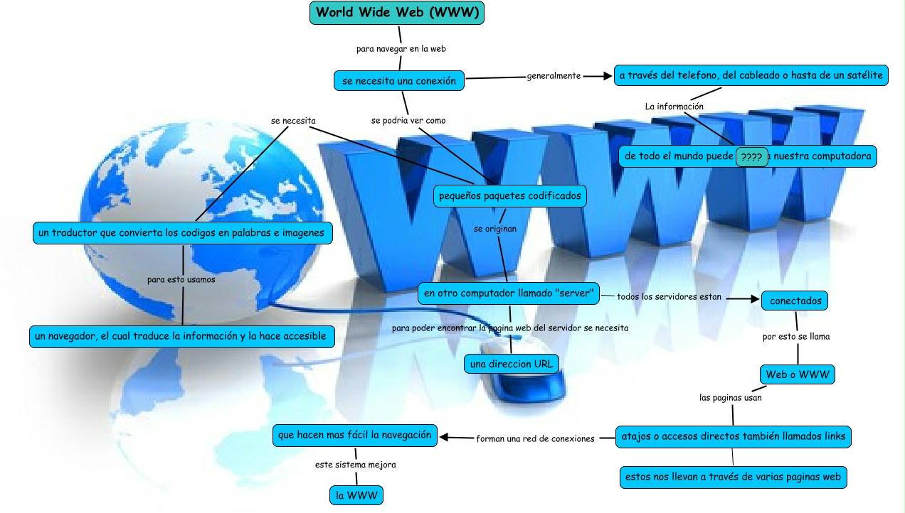 Este Cmap, tiene información relacionada con: orne y agus, en otro computador llamado "server" para poder encontrar la pagina web del servidor se necesita una direccion URL, se necesita una conexión se podria ver como pequeños paquetes codificados, en otro computador llamado "server" todos los servidores estan conectados, pequeños paquetes codificados se necesita un traductor que convierta los codigos en palabras e imagenes, atajos o accesos directos también llamados links ???? estos nos llevan a través de varias paginas web, Web o WWW las paginas usan atajos o accesos directos también llamados links, pequeños paquetes codificados se originan en otro computador llamado "server", que hacen mas fácil la navegación este sistema mejora la WWW, se necesita una conexión generalmente a través del telefono, del cableado o hasta de un satélite, un traductor que convierta los codigos en palabras e imagenes para esto usamos un navegador, el cual traduce la información y la hace accesible, a través del telefono, del cableado o hasta de un satélite La información ????, conectados por esto se llama Web o WWW, atajos o accesos directos también llamados links forman una red de conexiones que hacen mas fácil la navegación, World Wide Web (WWW) para navegar en la web se necesita una conexión