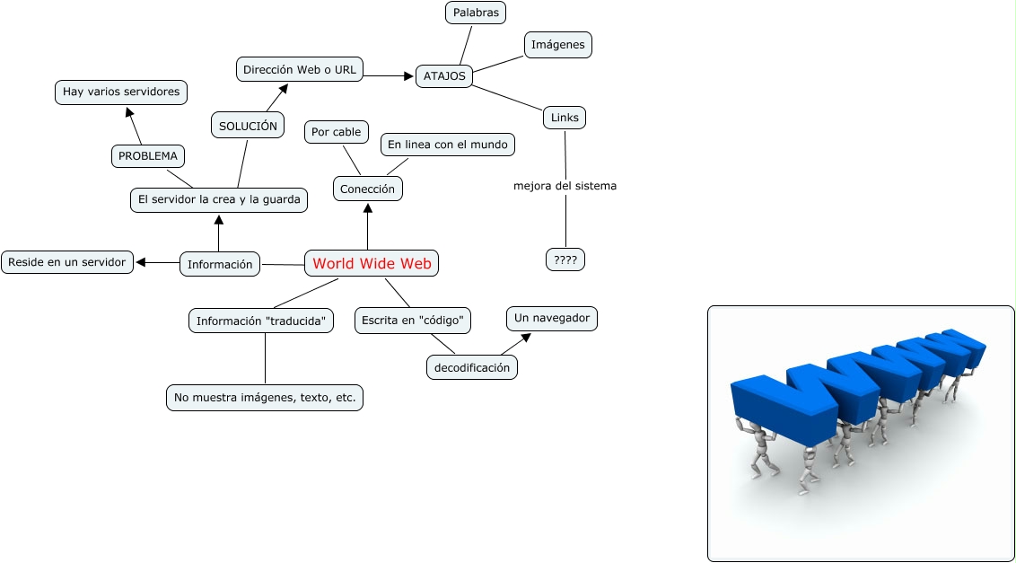 Este Cmap, tiene información relacionada con: Manuela Roces, El servidor la crea y la guarda ???? SOLUCIÓN, ATAJOS ???? Palabras, Información ???? El servidor la crea y la guarda, Conección ???? Por cable, ATAJOS ???? Imágenes, SOLUCIÓN ???? Dirección Web o URL, World Wide Web ???? Escrita en "código", El servidor la crea y la guarda ???? PROBLEMA, Links mejora del sistema ????, ATAJOS ???? Links, Escrita en "código" ???? decodificación, Dirección Web o URL ???? ATAJOS, Información "traducida" ???? No muestra imágenes, texto, etc., World Wide Web ???? Información "traducida", Información ???? Reside en un servidor, PROBLEMA ???? Hay varios servidores, World Wide Web ???? Información, World Wide Web ???? Conección, Conección ???? En linea con el mundo, decodificación ???? Un navegador