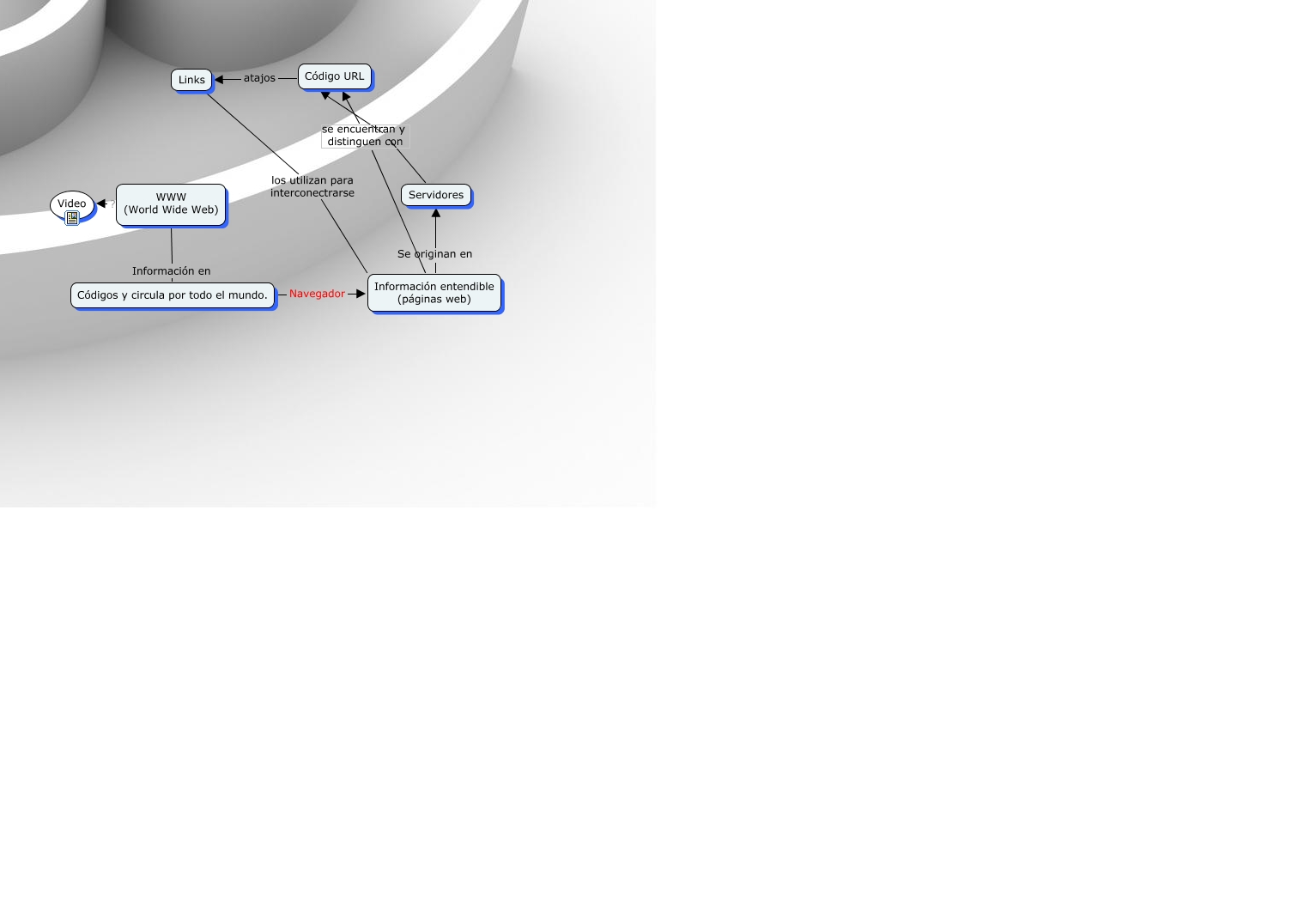 Este Cmap, tiene información relacionada con: Maxi Schmid www, WWW (World Wide Web) ???? Video, Servidores Código URL, Información entendible (páginas web) Se originan en Servidores, Links los utilizan para interconectrarse Información entendible (páginas web), Código URL atajos Links, Información entendible (páginas web) se encuentran y distinguen con Código URL, Códigos y circula por todo el mundo. Navegador Información entendible (páginas web), WWW (World Wide Web) Información en Códigos y circula por todo el mundo.