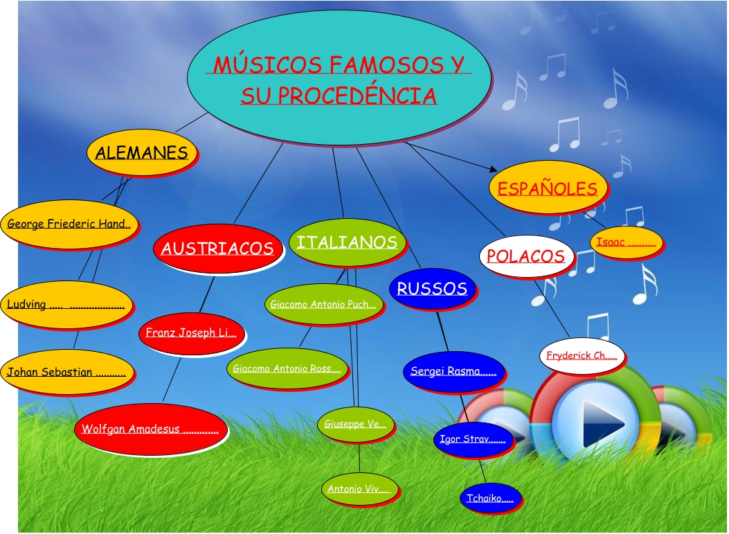 Este Cmap, tiene información relacionada con: Músicos Famosos y procedéncia, RUSSOS T Tchaiko....., Sergei Rasma...... ???? RUSSOS, ALEMANES ???? Johan Sebastian ..........., AUSTRIACOS ???? Franz Joseph Li..., MÚSICOS FAMOSOS Y SU PROCEDÉNCIA P POLACOS, RUSSOS ???? Igor Strav......., MÚSICOS FAMOSOS Y SU PROCEDÉNCIA ???? AUSTRIACOS, ESPAÑOLES a Isaac .........., POLACOS ???? Fryderick Ch....., Wolfgan Amadesus ............. ???? AUSTRIACOS, ITALIANOS ???? Giacomo Antonio Ross...., MÚSICOS FAMOSOS Y SU PROCEDÉNCIA ESPA ESPAÑOLES, George Friederic Hand.. ???? ALEMANES, ITALIANOS ???? Antonio Viv...., MÚSICOS FAMOSOS Y SU PROCEDÉNCIA ???? ALEMANES, ALEMANES ???? Ludving ..... ...................., Giacomo Antonio Puch... ???? ITALIANOS, MÚSICOS FAMOSOS Y SU PROCEDÉNCIA ???? RUSSOS, MÚSICOS FAMOSOS Y SU PROCEDÉNCIA ???? ITALIANOS, ITALIANOS ???? Giuseppe Ve...