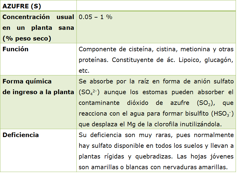 Azufre.png Calcio.png Deificiencia Ca en planta de Eucalipto.png Deificiencia Ca en planta de tomate.png Deificiencia K en planta de Eucalipto.png Deificiencia K en planta de tomate.png Deificiencia Mg en planta de Eucalipto.png Deificiencia Mg en planta de tomate.png Deificiencia N en planta de Eucalipto.png Deificiencia N en planta de tomate.png Deificiencia P en planta de Eucalipto.png Deificiencia P en planta de tomate.png Deificiencia S en planta de Eucalipto.png Deificiencia S en planta de tomate.png Fósforo.png Macronutrientes.url Magnesio.png Micronutrientes.url Nitrógeno.png Nutrición Mineral.cmap.cmap Nutrientes.url Potasio.png