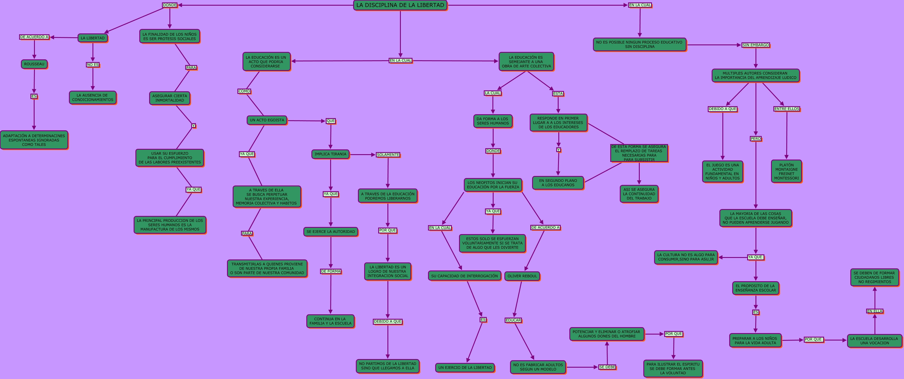 Este Cmap, tiene información relacionada con: CAP 4 - LA DISCIPLINA DE LA LIBERTAD.cmap, POTENCIAR Y ELIMINAR O ATROFIAR ALGUNOS DONES DEL HOMBRE POR QUE PARA ILUSTRAR EL ESPIRITU SE DEBE FORMAR ANTES LA VOLUNTAD, LOS NEOFITOS INICIAN SU EDUCACIÓN POR LA FUERZA YA QUE ESTOS SOLO SE ESFUERZAN VOLUNTARIAMENTE SI SE TRATA DE ALGO QUE LES DIVIERTE, USAR SU ESFUERZO PARA EL CUMPLIMIENTO DE LAS LABORES PREEXISTENTES YA QUE LA PRINCIPAL PRODUCCION DE LOS SERES HUMANOS ES LA MANUFACTURA DE LOS MISMOS, OLIVER REBOUL EDUCAR NO ES FABRICAR ADULTOS SEGUN UN MODELO, LA ESCUELA DESARROLLA UNA VOCACION EN ELLA SE DEBEN DE FORMAR CIUDADANOS LIBRES NO REGIMIENTOS, UN ACTO EGOISTA YA QUE A TRAVES DE ELLA SE BUSCA PERPETUAR NUESTRA EXPERIENCIA, MEMORIA COLECTIVA Y HABITOS, LA LIBERTAD DE ACUERDO A ROUSSEAU, IMPLICA TIRANIA YA QUE SE EJERCE LA AUTORIDAD, ASEGURAR CIERTA INMORTALIDAD Y USAR SU ESFUERZO PARA EL CUMPLIMIENTO DE LAS LABORES PREEXISTENTES, A TRAVES DE LA EDUCACIÓN PODREMOS LIBERARNOS POR QUE LA LIBERTAD ES UN LOGRO DE NUESTRA INTEGRACION SOCIAL, LA DISCIPLINA DE LA LIBERTAD DONDE LA FINALIDAD DE LOS NIÑOS ES SER PROTESIS SOCIALES, LA MAYORIA DE LAS COSAS QUE LA ESCUELA DEBE ENSEÑAR, NO PUEDEN APRENDERSE JUGANDO YA QUE LA CULTURA NO ES ALGO PARA CONSUMIR,SINO PARA ASU,IR, LA LIBERTAD NO ES LA AUSENCIA DE CONDICIONAMIENTOS, LA DISCIPLINA DE LA LIBERTAD EN LA CUAL NO ES POSIBLE NINGUN PROCESO EDUCATIVO SIN DISCIPLINA, LA DISCIPLINA DE LA LIBERTAD EN LA CUAL LA EDUCACIÓN ES SEMEJANTE A UNA OBRA DE ARTE COLECTIVA, LA MAYORIA DE LAS COSAS QUE LA ESCUELA DEBE ENSEÑAR, NO PUEDEN APRENDERSE JUGANDO YA QUE EL PROPOSITO DE LA ENSEÑANZA ESCOLAR, LA EDUCACIÓN ES UN ACTO QUE PODRIA CONSIDERARSE COMO UN ACTO EGOISTA, RESPONDE EN PRIMER LUGAR A A LOS INTERESES DE LOS EDUCADORES Y EN SEGUNDO PLANO A LOS EDUCANOS, NO ES FABRICAR ADULTOS SEGUN UN MODELO SE DEBE POTENCIAR Y ELIMINAR O ATROFIAR ALGUNOS DONES DEL HOMBRE, IMPLICA TIRANIA SOLAMENTE A TRAVES DE LA EDUCACIÓN PODREMOS LIBERARNOS