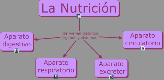 Este Cmap, tiene información relacionada con: La nutrición, La Nutrición intervienen distintos órganos y sistemas Aparato digestivo, La Nutrición intervienen distintos órganos y sistemas Aparato circulatorio, La Nutrición intervienen distintos órganos y sistemas Aparato excretor, La Nutrición intervienen distintos órganos y sistemas Aparato respiratorio